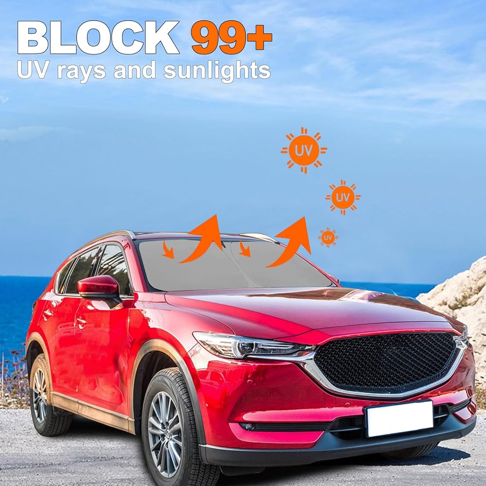 مظلة للزجاج الأمامي تناسب 2017-2024 Mazda CX5 Sport، Touring، Grand Touring، 4 أبواب كروس، مظلة النافذة الواقية من الشمس كتل الأشعة فوق البنفسجية تحافظ على برودة سيارتك