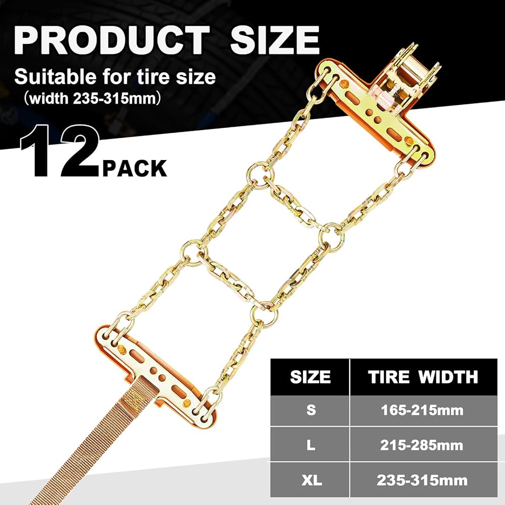 Size of chain: applicable to tire width of about 6.5-8.46 inches/ 165-215 mm