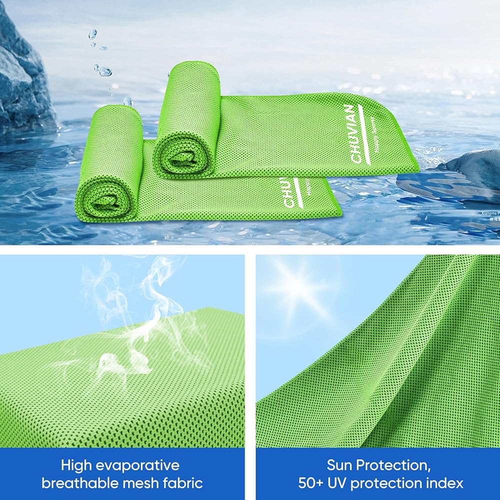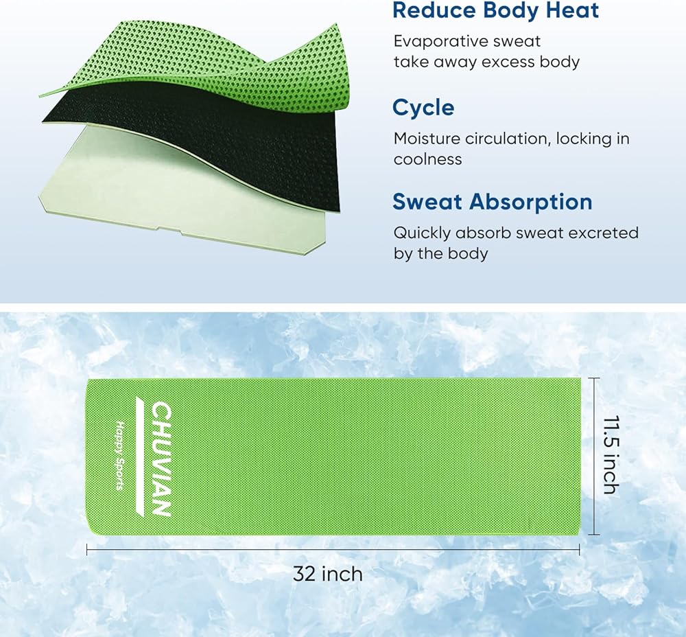 • 【SAFE & ECO-FRIENDLY MATERIAL】 The Cooling towel is made of super ice hyper-evaporative breathable material. Working on the physical evaporation of moisture, no chemicals are used in the making of the cooling towels.