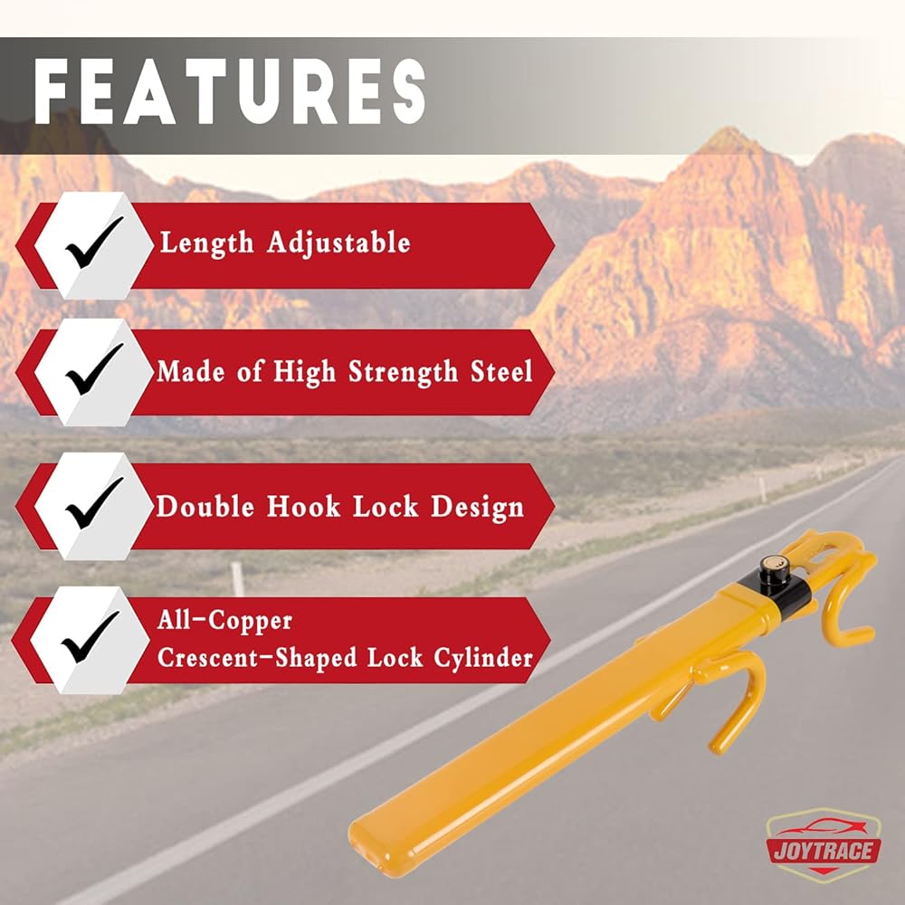 قفل عجلة القيادة، جهاز مضاد للسرقة شديد التحمل، مشبك بطول قابل للتعديل، أقفال خطافية مزدوجة لمعظم السيارات والشاحنات وسيارات الدفع الرباعي
