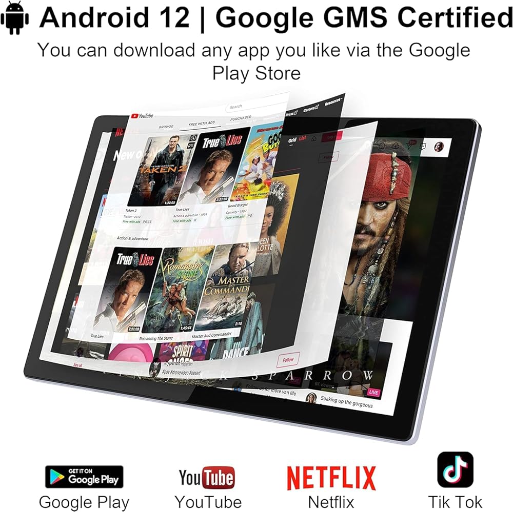 • 【Android 12 Tablets+GMS Certification】This 10 inch tablet is powered by the latest Android 12 smart operating system, android tablets run smoother and faster. The Android 12 tablet is GMS certified by Google, and you can get all your favorite apps like Netflix, YouTube, Facebook, Twitter, etc. from the Google App Store.
