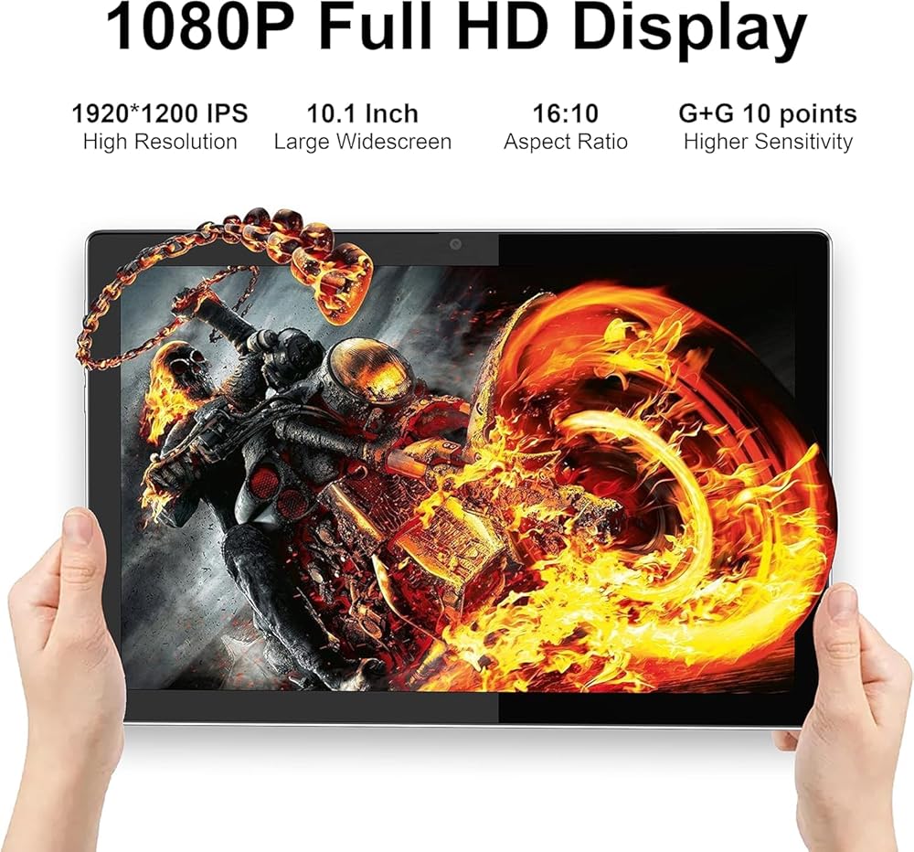• 【1920×1200 IPS Display+5MP&13MP Dual Cameras 】The tablet features a 10.1-inch G+G 10 points display with a high resolution of 1920 x 1200 IPS for a clearer viewing experience and faster touchscreen response. Equipped with a front camera (5 megapixels) and a rear camera (13 megapixels), you can easily enjoy shooting and video calls at any time. The android tablet has a large battery capacity of 7000 mAh, which can be used for a long time.