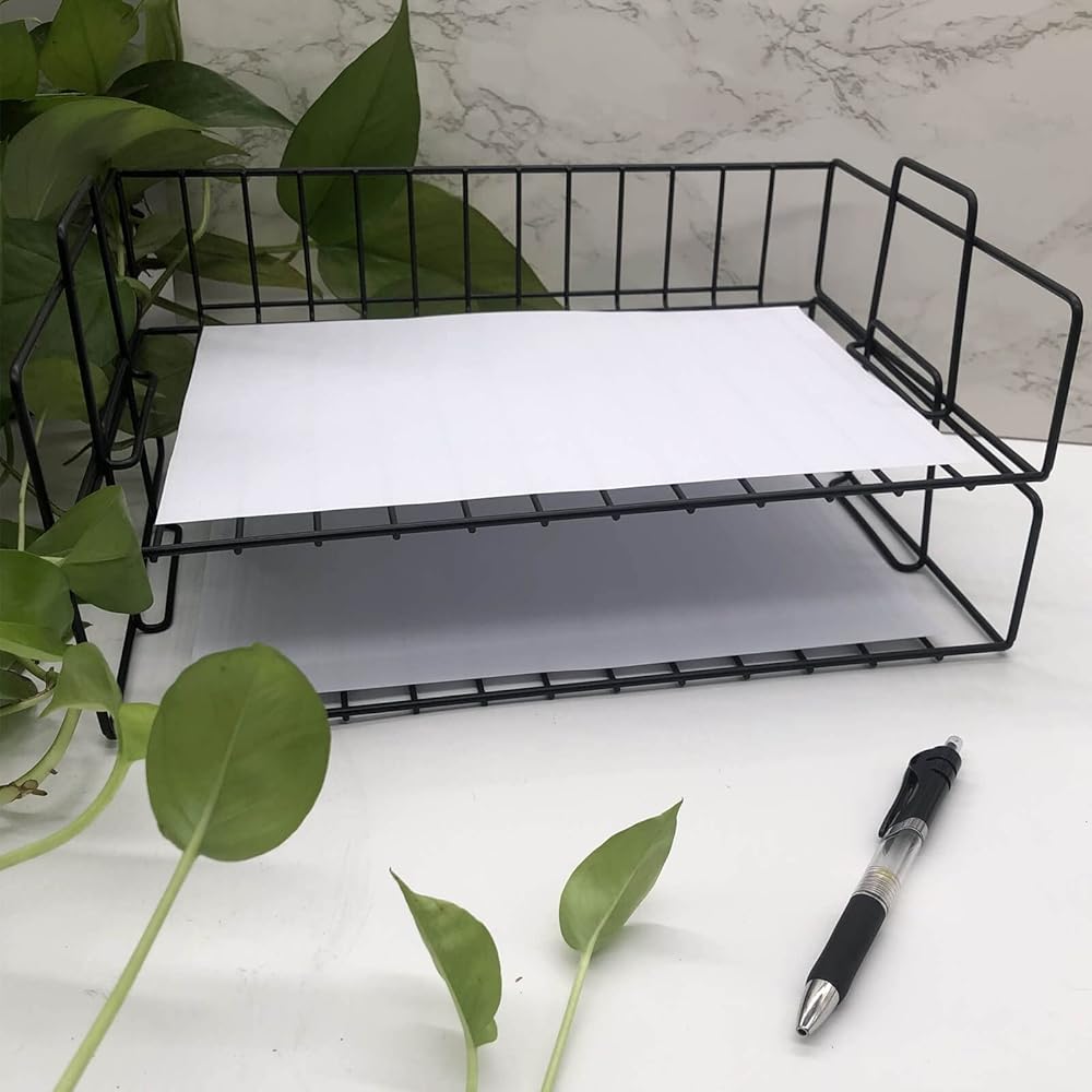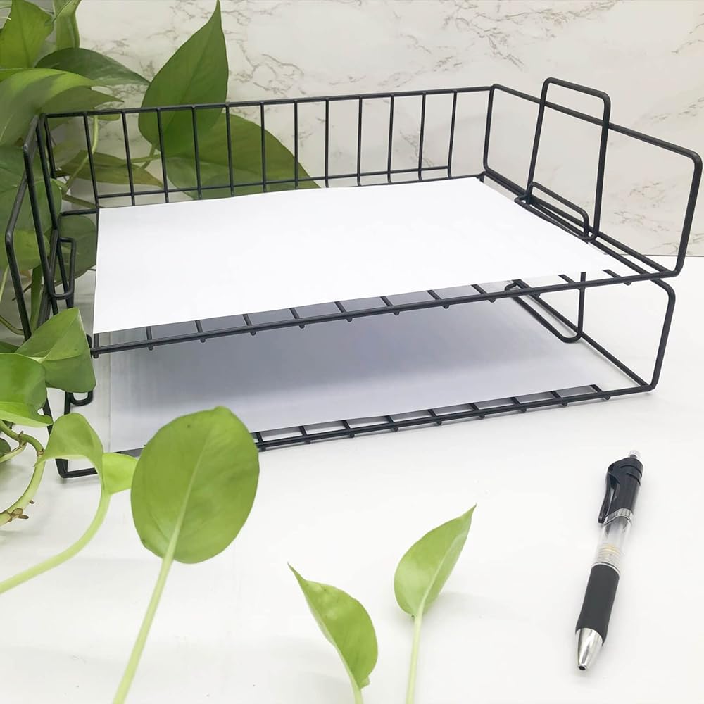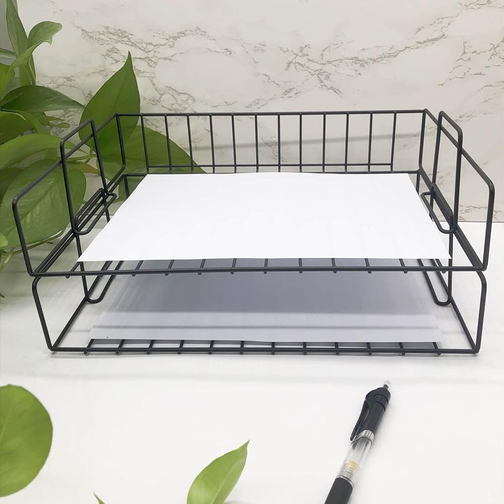 【SIMPLE AND STYLISH DESIGN】Use separately letter trays organizing your files while the stackable design allow you to have a 2 tier file organizer for saving more desk space