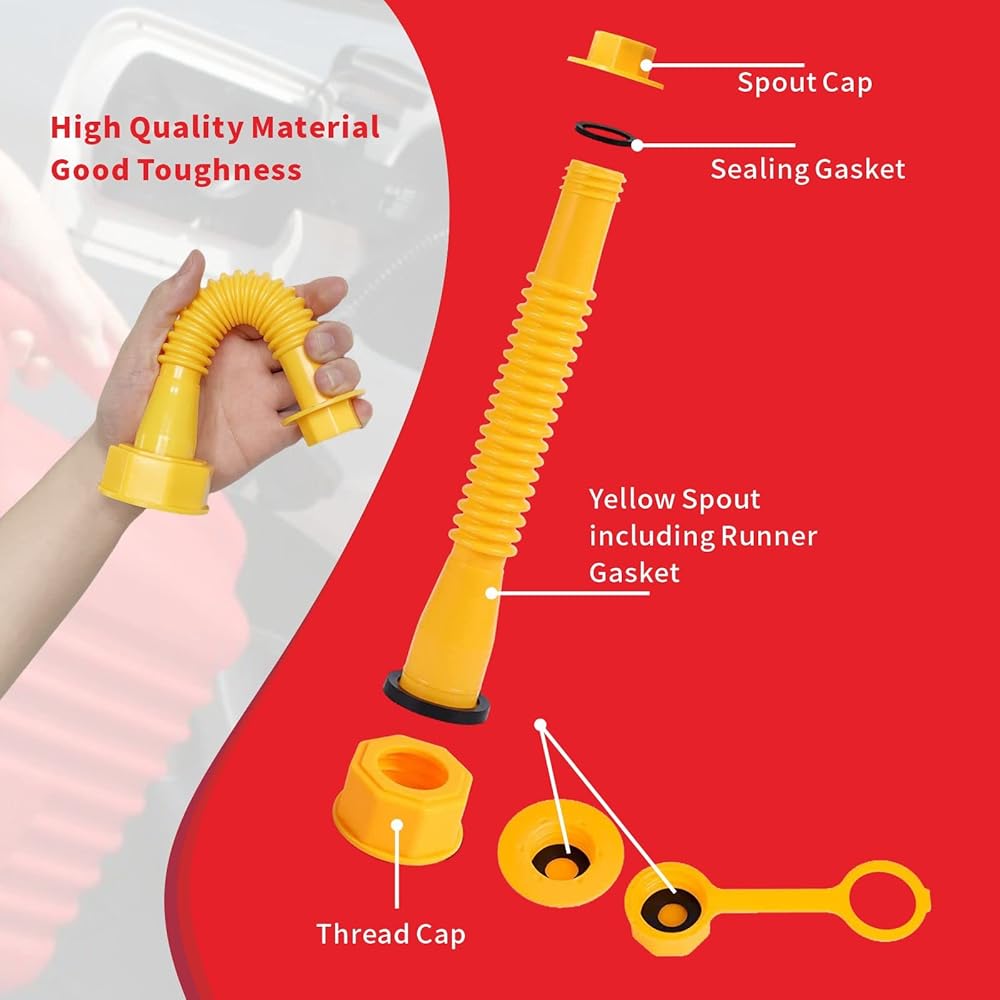 【High Quality Material] Gas can spouts are made from high-quality HDPE materials. Gas tank nozzle has excellent durability and bendable. The gas spout also includes thicker and widened rubber gaskets to help ensure a good, tight fit to the cans.yritma