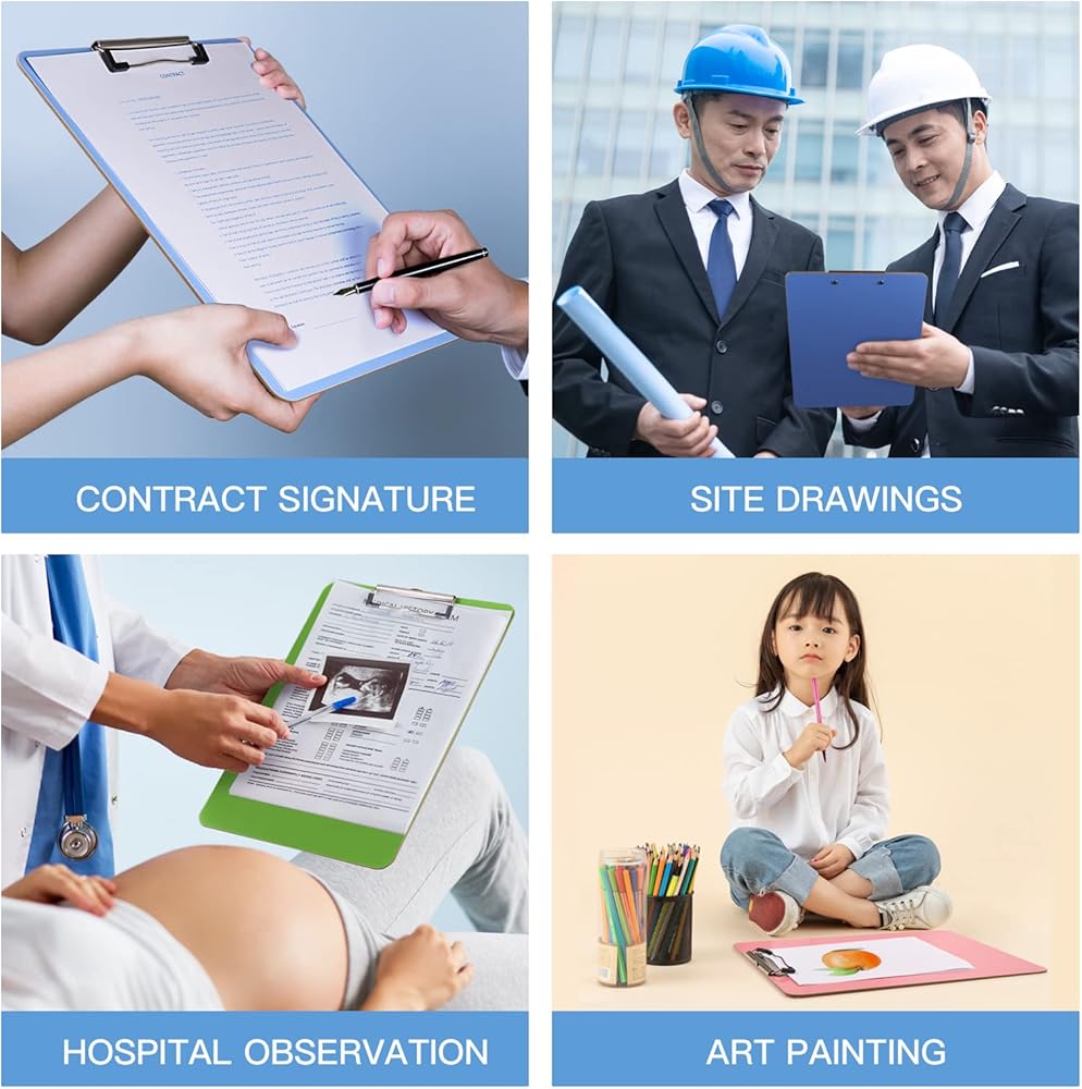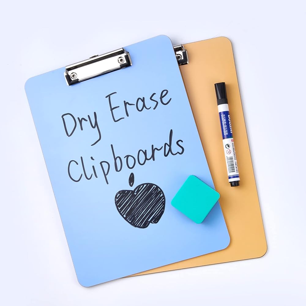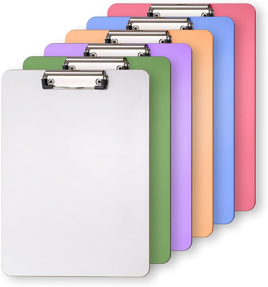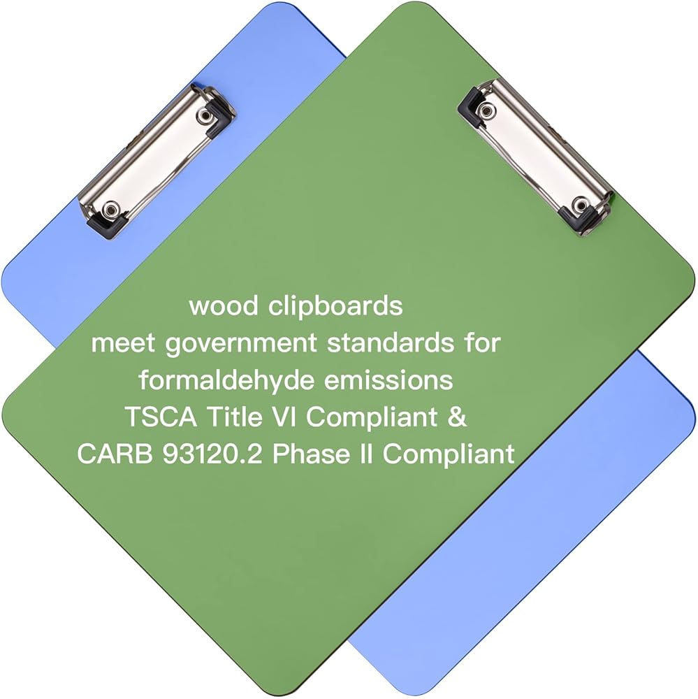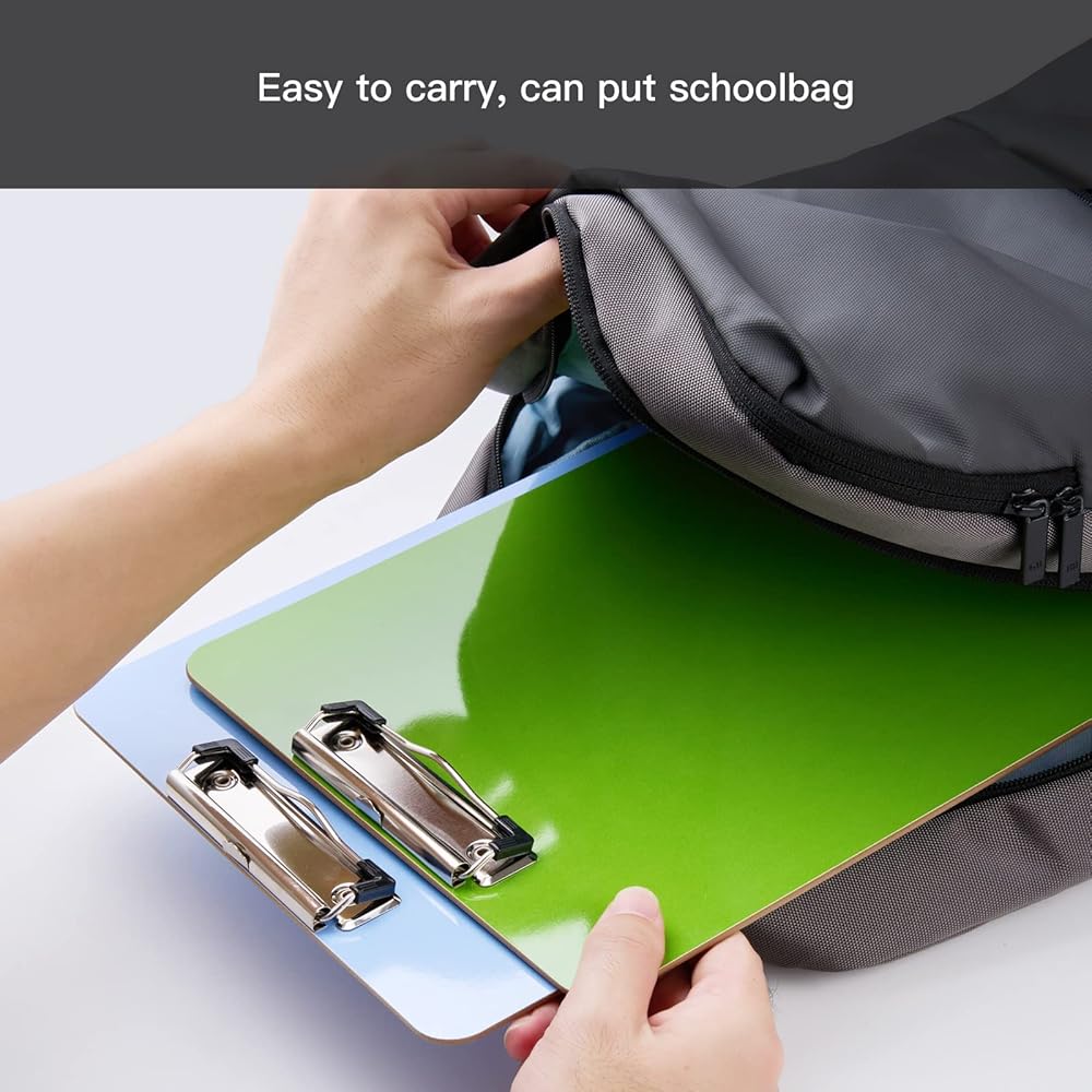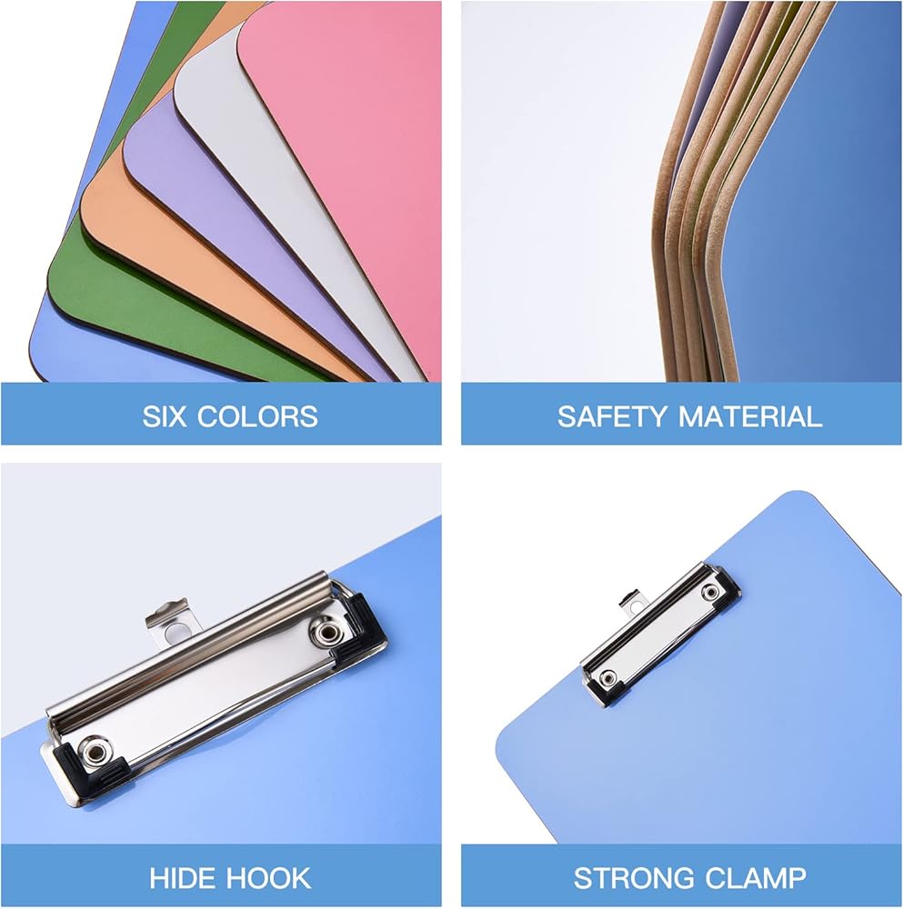 6 Pack Recycled Wood Clipboards with Metal Clip,Dry Erase Clipboards, Low Profile Clip, Office Clipboards, Assorted Colors, Standard A4 Letter Size, ECO Friendly
