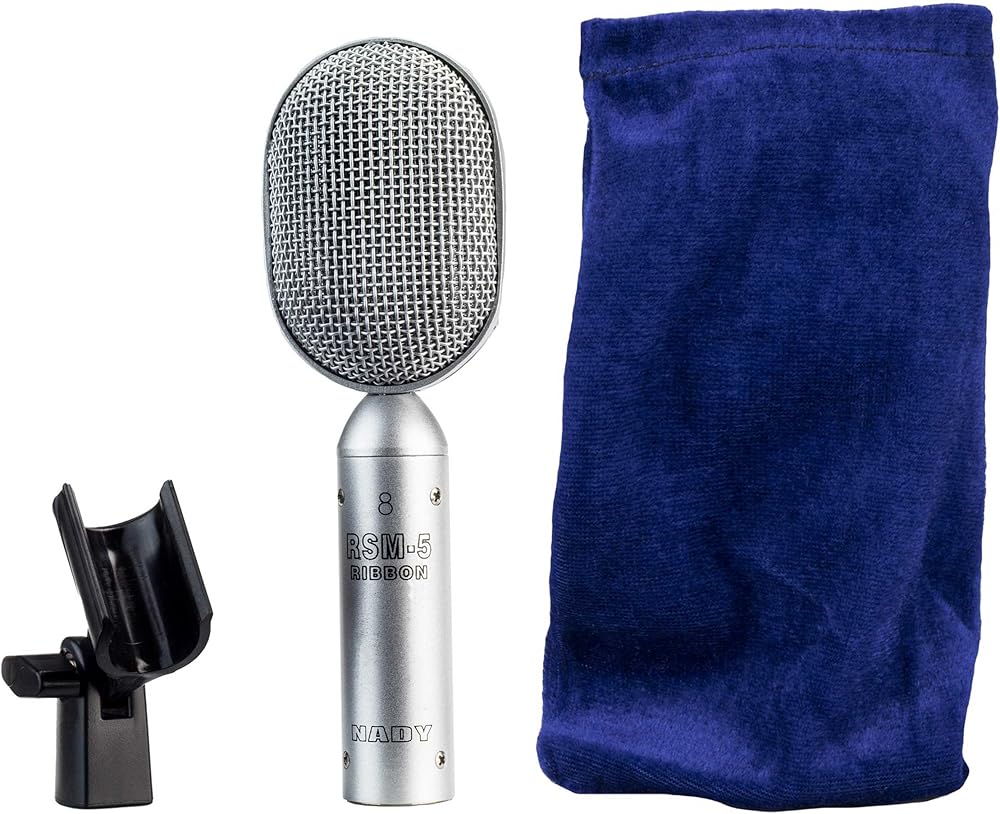 Perfect for close miking of guitar amps and cabinets, brass instruments, strings, piano, percussion, vocals and orchestral ambiance. Unique, compact shape for easy, unobtrusive mic placement anywhere. Low-tension 45mm long, 2-micron thick aluminum ribbon design with typical “large, mellow” ribbon audio reproduction Smooth, natural extended low and high ends, and detailed, realistic mids Unparalleled overall stunning realism with fast, accurate transient response, ultra-high dynamic range and >135 dB SPL capability Utmost versatility in dialing in desired sound by varying mic placement. Figure-8 audio directional (pickup) pattern for both front and rear side, with extended sweet spots (as compared to large diaphragm condenser mics). Can be used with a second RSM-5 for individual recording volume control of 2 separate sources by placing each source in the principal axis of one mic and the off-axis null of the other. Manufactured with the finest materials — a machined housing with advanced internal shockmount construction for the highest structural integrity and rugged reliability Supplied with a mic clip and leatherette pouch