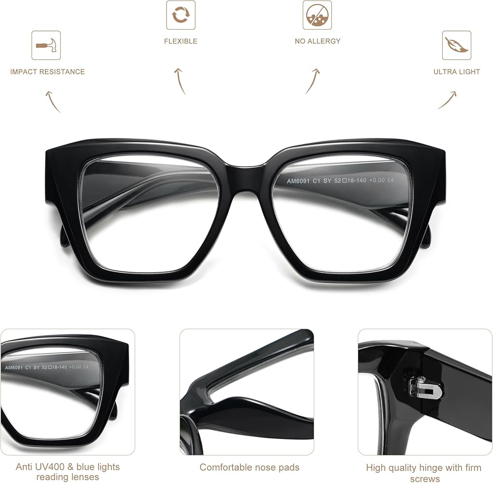 عدسات قراءة مضادة للضوء الأزرق - يمكن للعدسات المضادة للضوء الأزرق أن تمنع أضرار الضوء الأزرق الضارة الناتجة عن الأجهزة الرقمية وتحميك من الشعور بالدوار بعد ارتدائها طوال اليوم في المكتب.