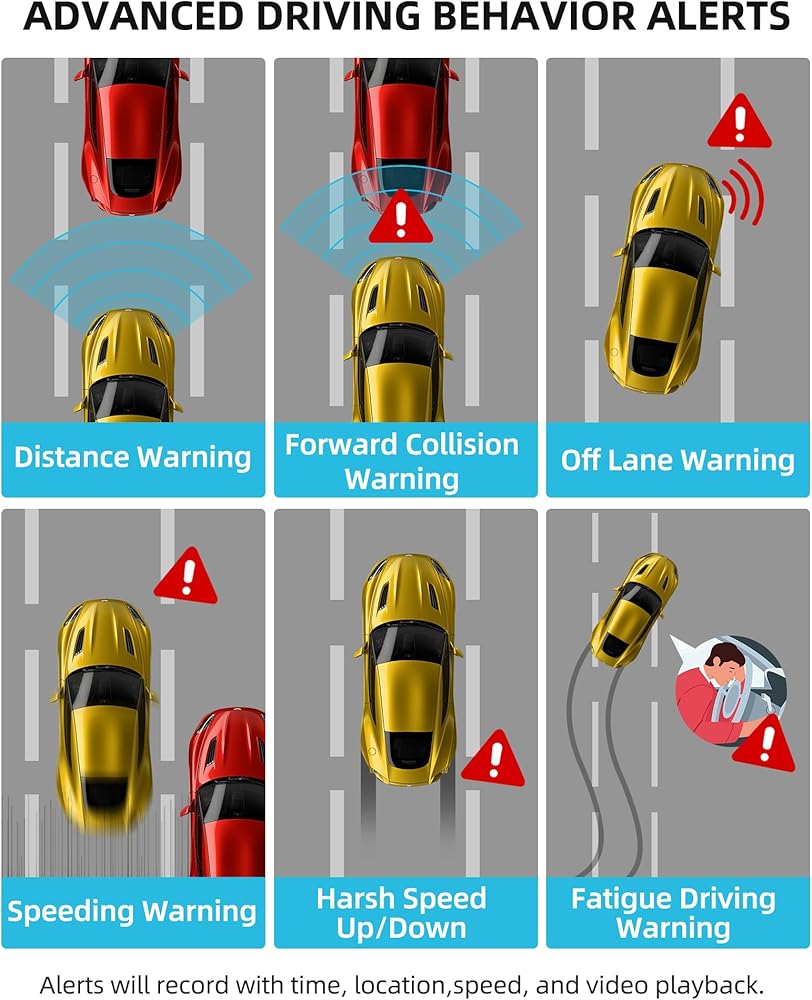 The ADAS algorithm enables the device to monitor incidents related to following distance, near collisions, lane keeping, etc., and warn the driver in real time.