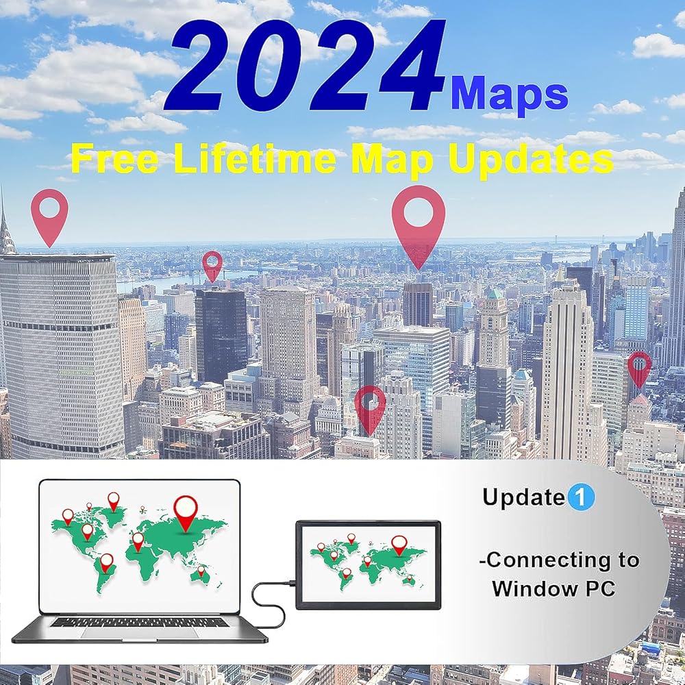 نظام تحديد المواقع العالمي للسيارة، أحدث خريطة لعام 2024، شاشة لمس 7 بوصات، نظام تحديد المواقع العالمي للسيارة سعة 256-16 جيجابايت، توجيه اتجاه الانعطاف الصوتي، دعم السرعة وتحذير الضوء الأحمر، خريطة مدى الحياة لأمريكا الشمالية مثبتة مسبقًا، تحديث مجاني...