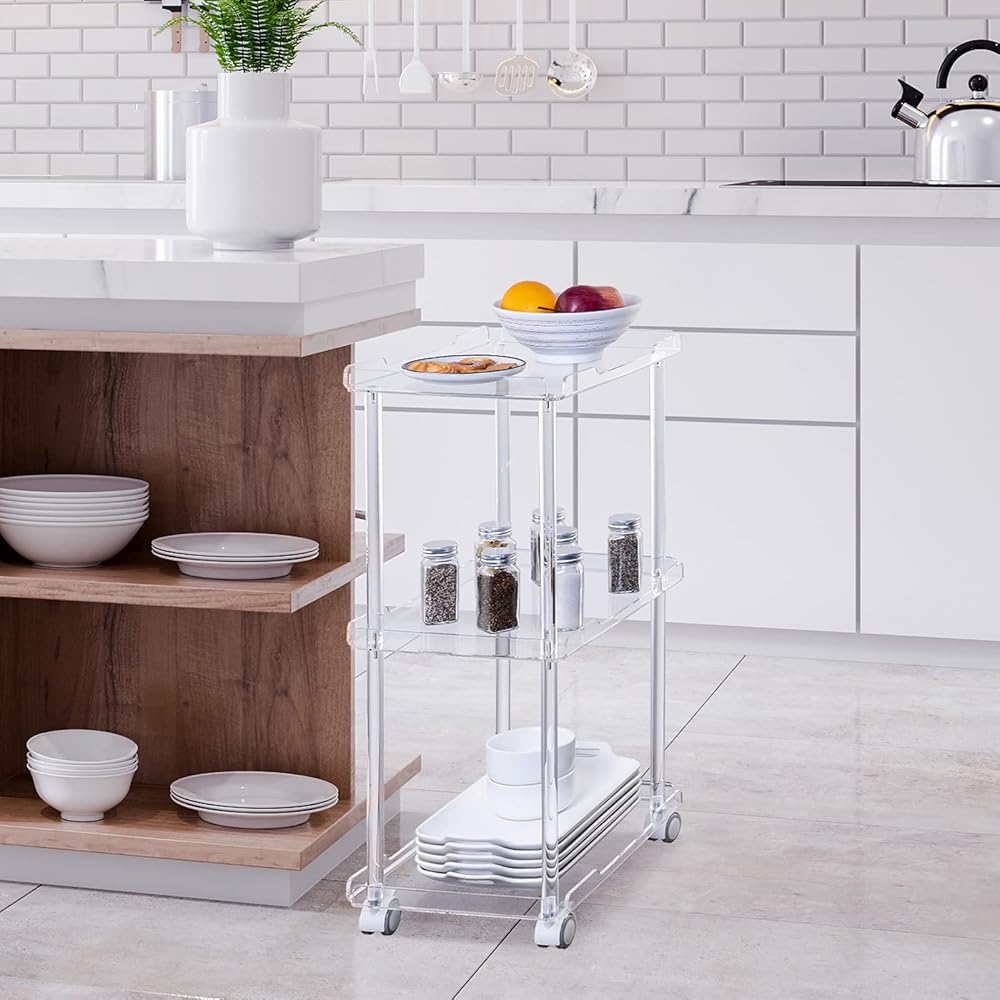 عربة دوارة عملية - عربة دوارة لتخزين المطبخ بعجلات قابلة للقفل سهلة التخزين والتحريك. لها حواف مرتفعة لمنع سقوط الأشياء أثناء تحرك العربة.