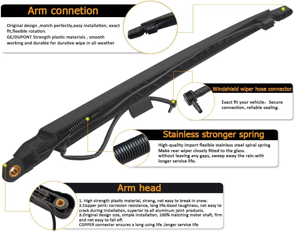 • إطار صلب مصبوب، زنبرك أقوى من الفولاذ المقاوم للصدأ، أداء متين، شفرات ممسحة مناسبة لجميع الأحوال الجوية وجميع المواسم