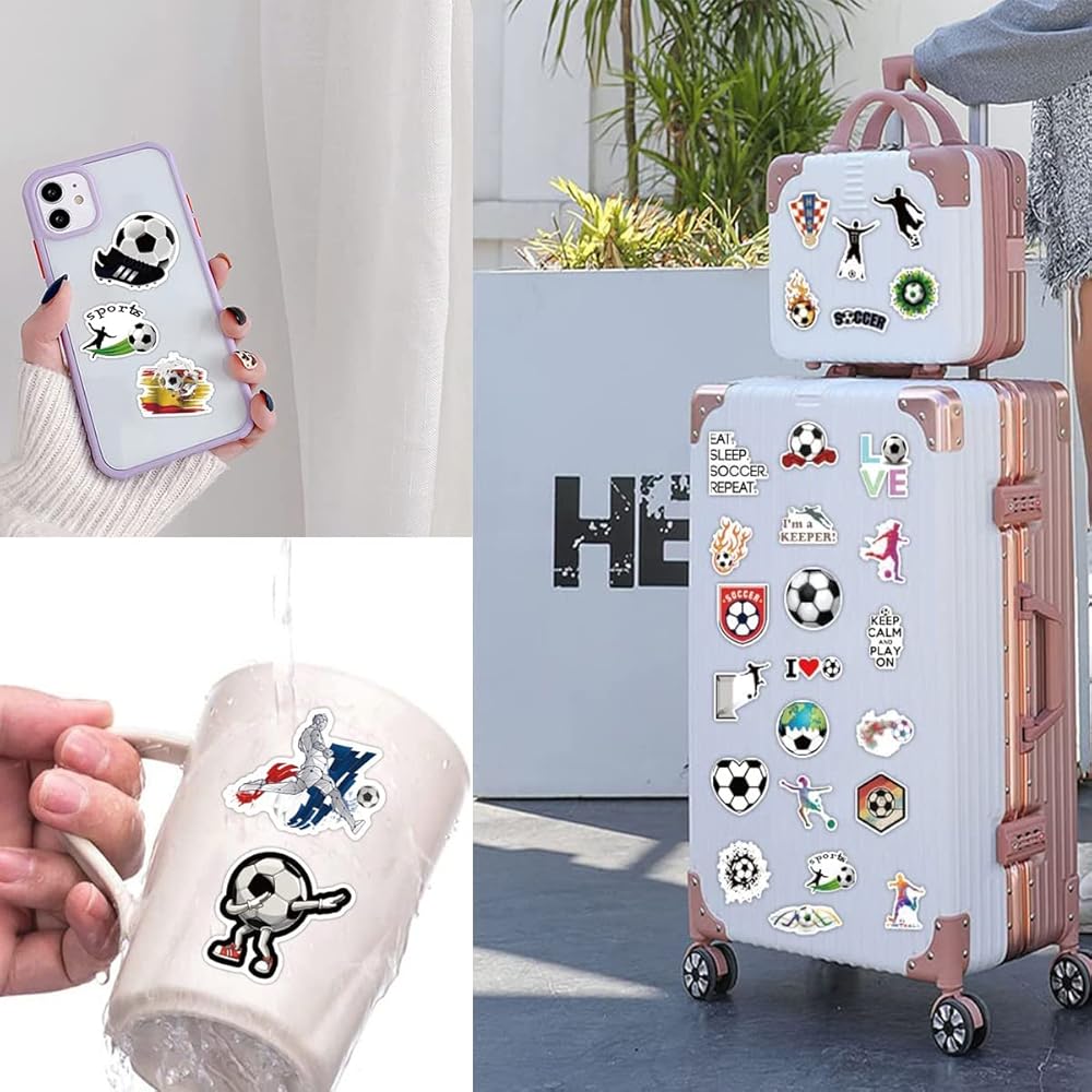 • ⚽🏆High quality sticker: The sticker is made of waterproof PVC material which are sun protection and waterproof.About 2-3.6 inches 50 pieces of Soccer Stickers Gifts No duplicates.