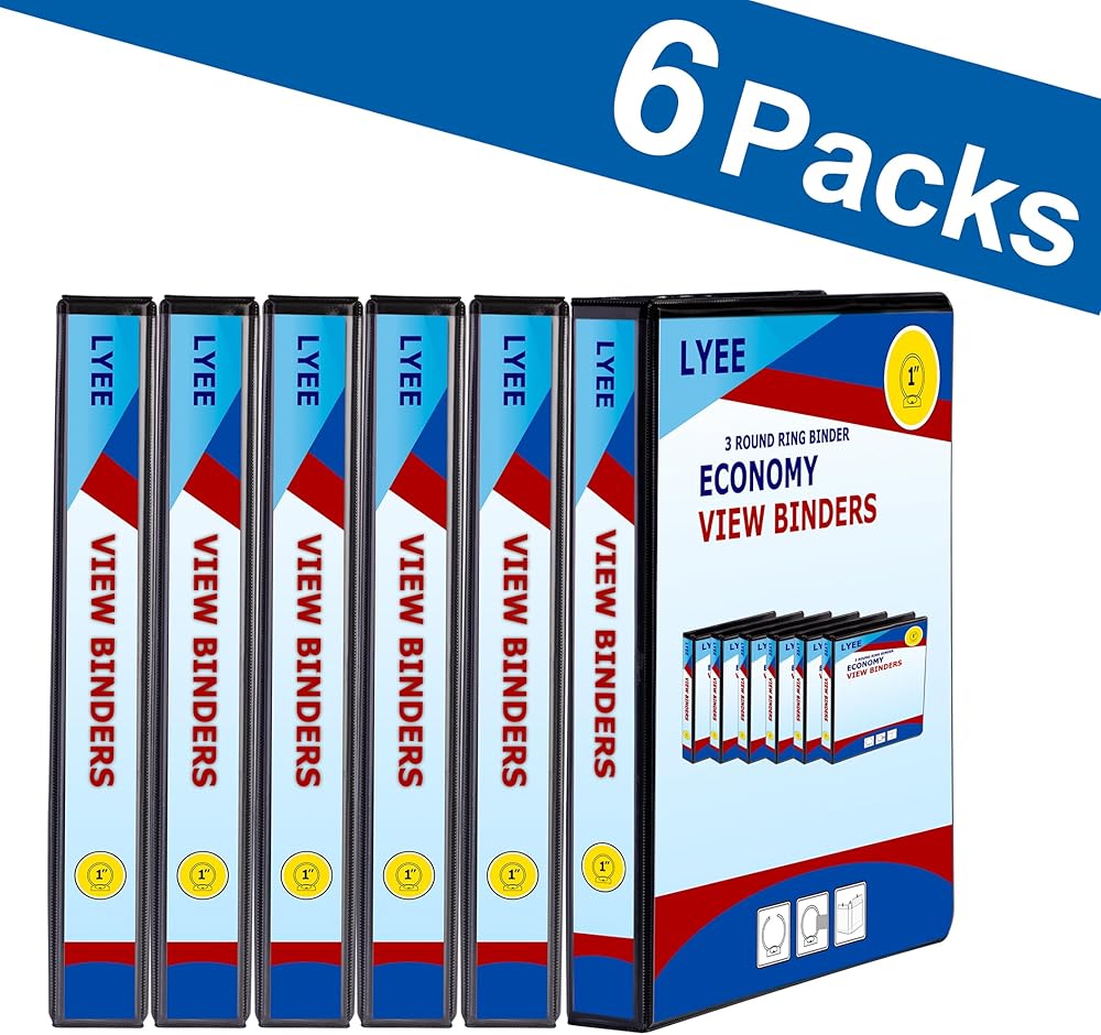 Lyee Standard binder 1.0 inch Round Ring Binder, Fit 8.5" x 11" Paper, 6-Pack (6black)