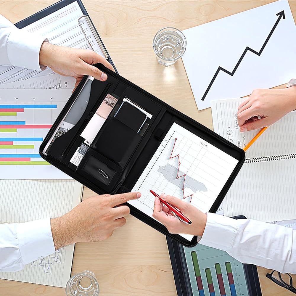 【SIDE POCKET】Large side pocket can hold A4 size documents, such as contracts/documents and other materials; the small side pocket can hold receipts and invoices, which is convenient for signing contracts