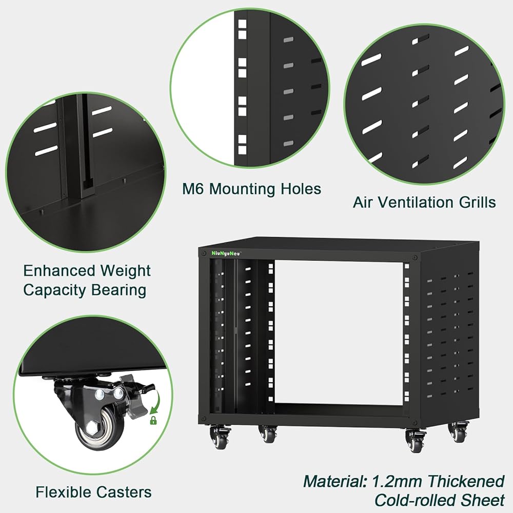Great Ventilation: Multiple rows of ventilation grills on both sides to keep your equipment at better performance and cool. The front and rear of the rack case are open, which is also easy for wiring and patching access.