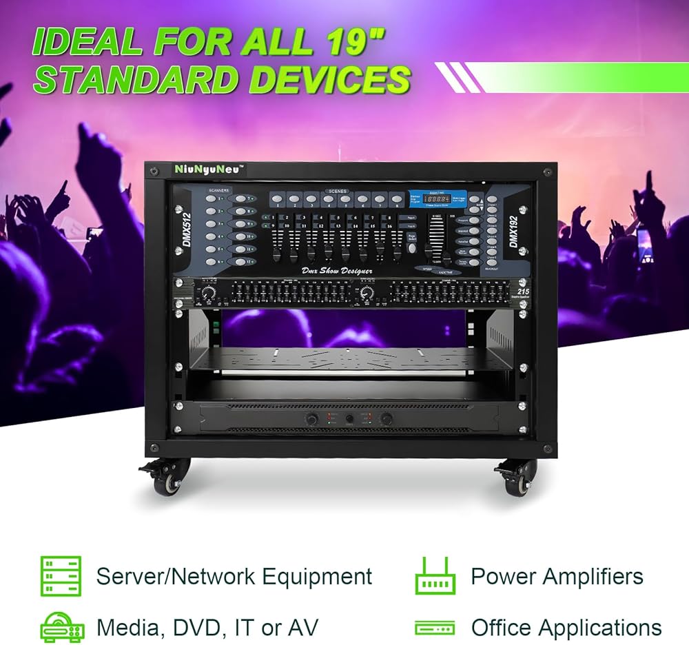 Versatile: Fits all standard 19" racks mount. Ideal for storing and organizing Server/Network Equipment, Power Amplifiers, DVD Players, DJ Signal Processers, etc. Suitable for AV, Networking, Computer Server, Home Theater rackmount gear.