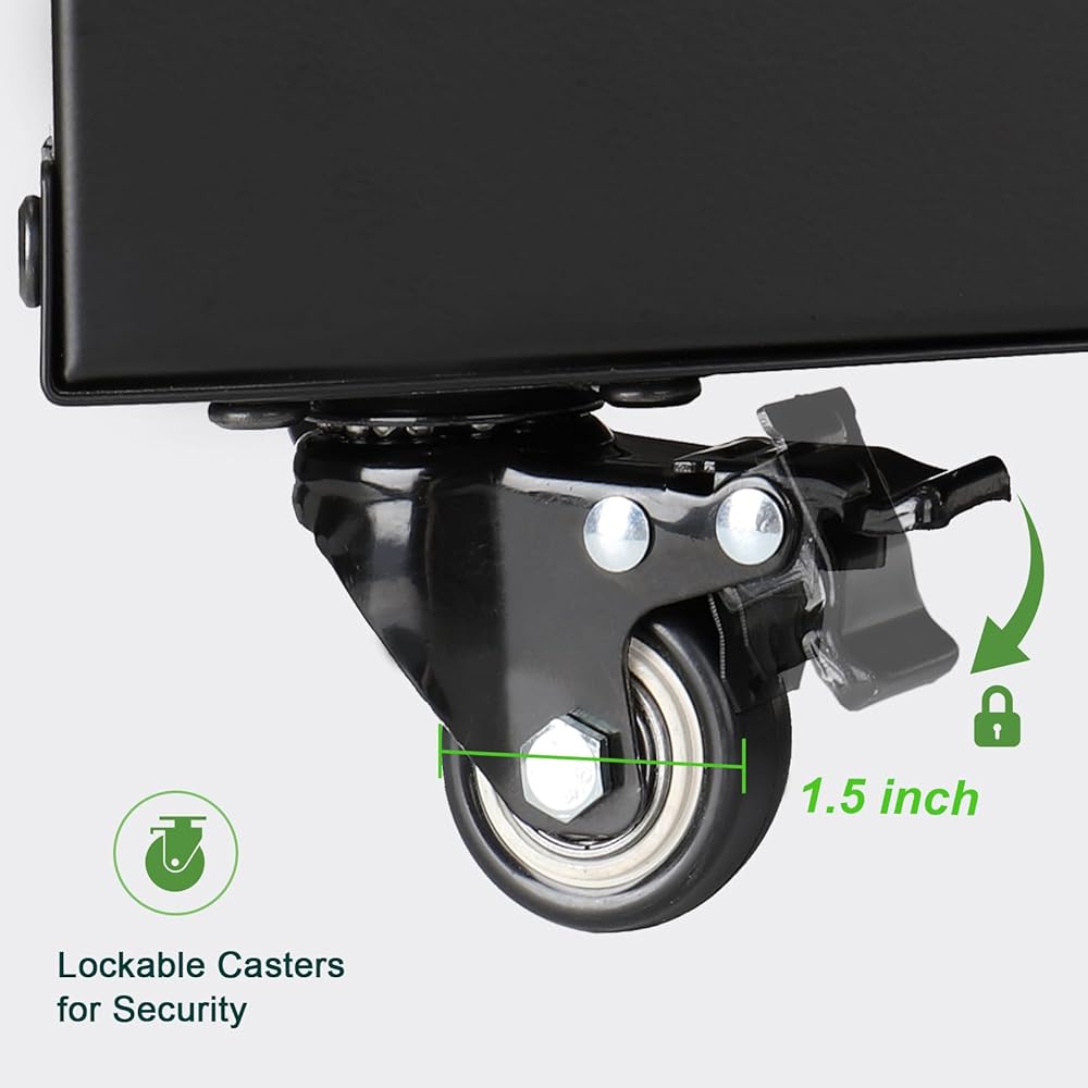 Lockable Casters for Security: Equipped with 4 spinner casters, it is flexible to move and easy to transport without hurting the ground. Casters with brake locks easily secure the rack case.