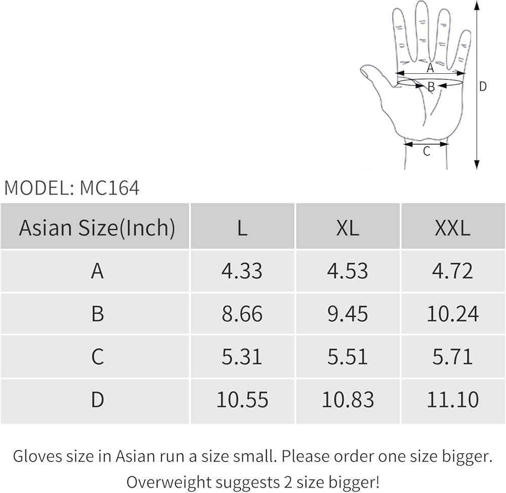 • حماية للمفاصل الصلبة: إلى جانب الغلاف البلاستيكي الصلب المصبوب من مادة PVC على المفصل، أضفنا واقيات مبطنة إضافية على حامل القمر لراحة اليد من أجل مقاومة فائقة للصدمات والتآكل. نصائح: مقاس هذه القفازات هو المقاس الآسيوي. يرجى اختيار المقاس المقابل وفقًا لمخطط المقاسات.
