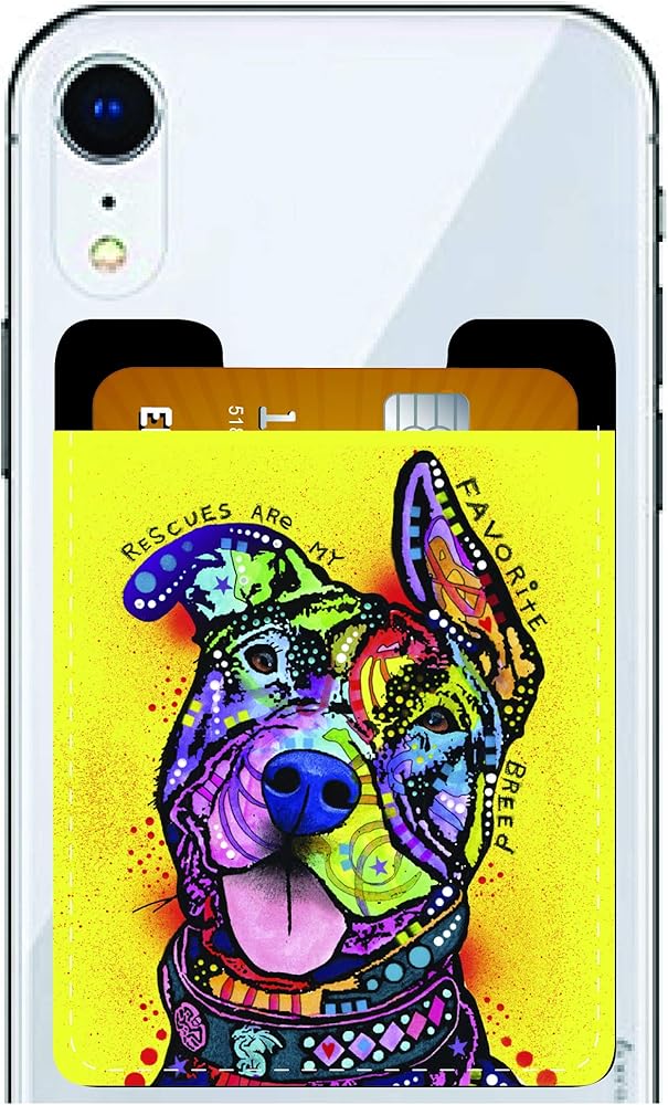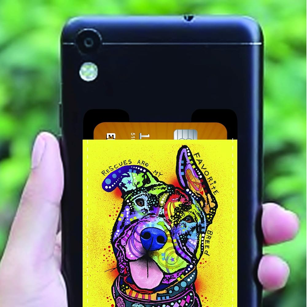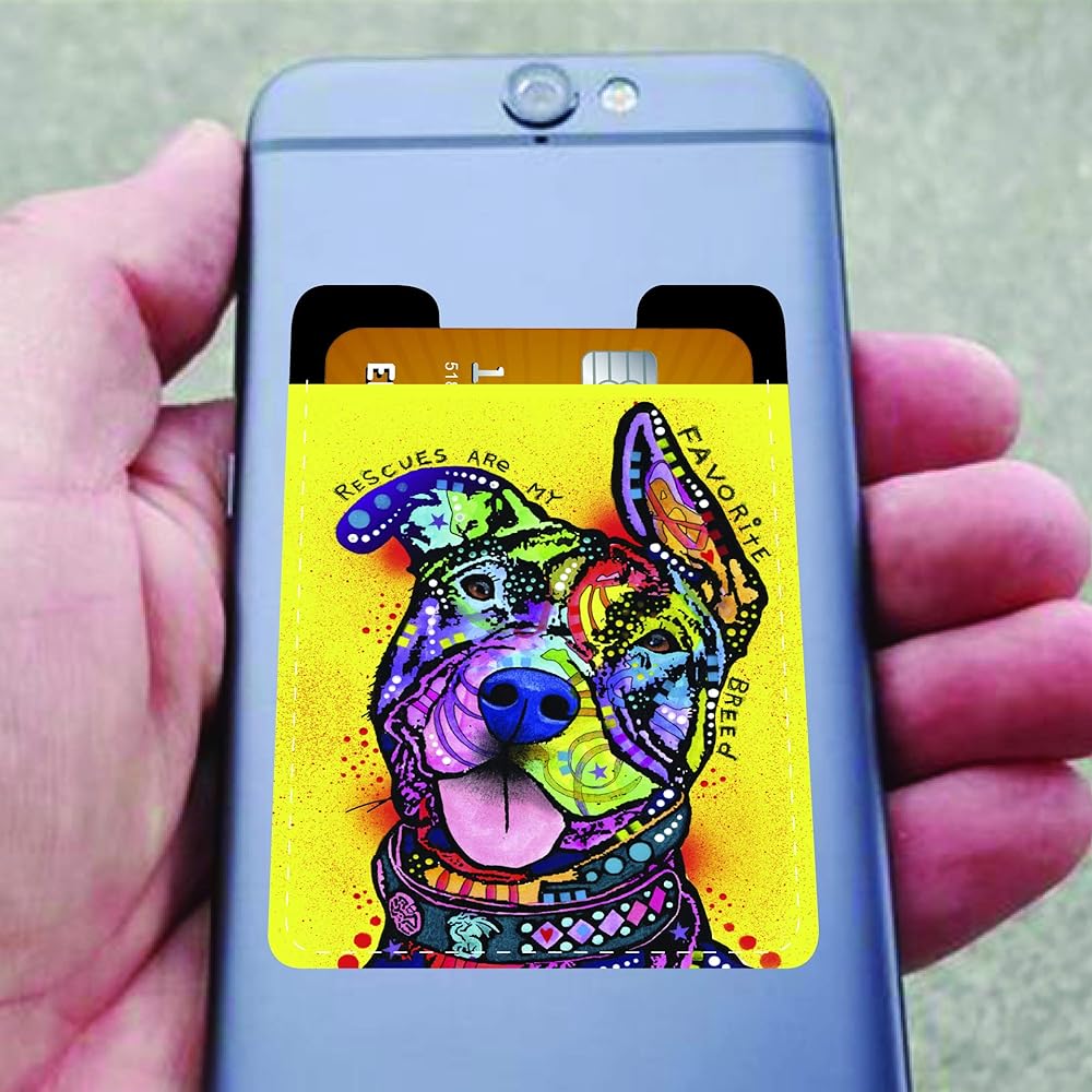 Enjoy It Dean Russo Pit Bull Phone Pocket - Peel and Stick Pit Bull Phone Wallet Credit Card Holder for Smartphones - Rescues are My Favorite Breed