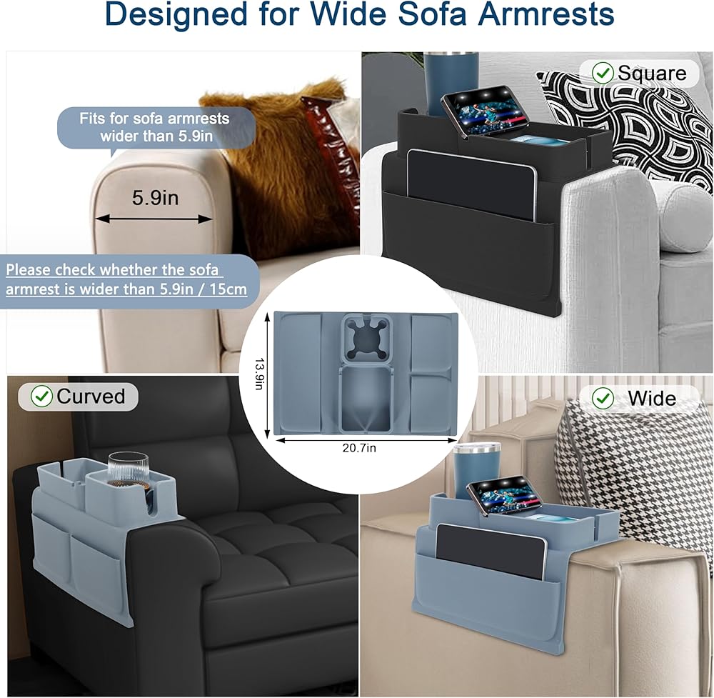 ☕ جيوب جانبية ذات سعة كبيرة: تتميز علبة الأريكة هذه المزودة بحامل أكواب بتصميم جيوب جانبية، وجيب كبير وجيبين صغيرين، مما يحافظ على كل ما تحتاجه (المشروبات والوجبات الخفيفة وأجهزة التحكم عن بعد والهواتف والمجلات) في متناول يدك. يرجى ملاحظة أن صينية ذراع الأريكة هذه تناسب مساند ذراع الأريكة التي يزيد عرضها عن 5.9 بوصة.