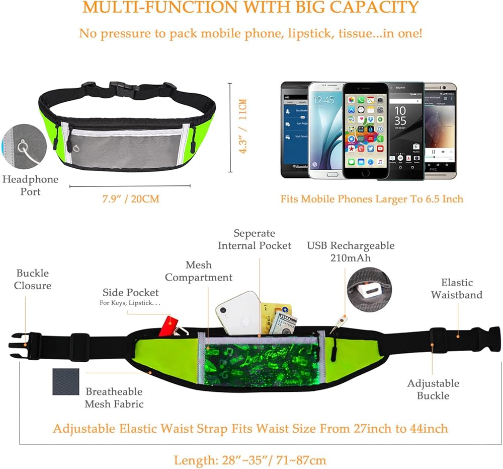【حجم قابل للتعديل】لست بحاجة إلى البحث عن الحجم المناسب لحزام الخصر بعد الآن. حزمة فاني النحيفة LED قابلة للتعديل. تناسب حقيبة الخصر للجري مقاسات الخصر من 29 بوصة إلى 42 بوصة مع حزام مرن وقابل للتعديل، وسيناسب حامل الهاتف الخلوي للجري جميع أفراد عائلتك.