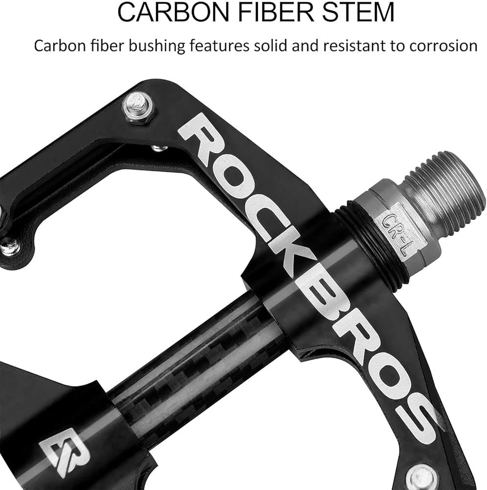 【محامل فائقة النعومة】المغزل مصنوع من مادة فولاذ الكروم والموليبدينوم، وهي أقوى من الفولاذ العادي وتتميز بأداء أفضل للحمل. محامل محكمة الغلق من DU تجعل دواسات الدراجة المسطحة أكثر متانة ومضادة للتآكل، وتحافظ على دوران الدواسات بسلاسة وبدون ضوضاء.