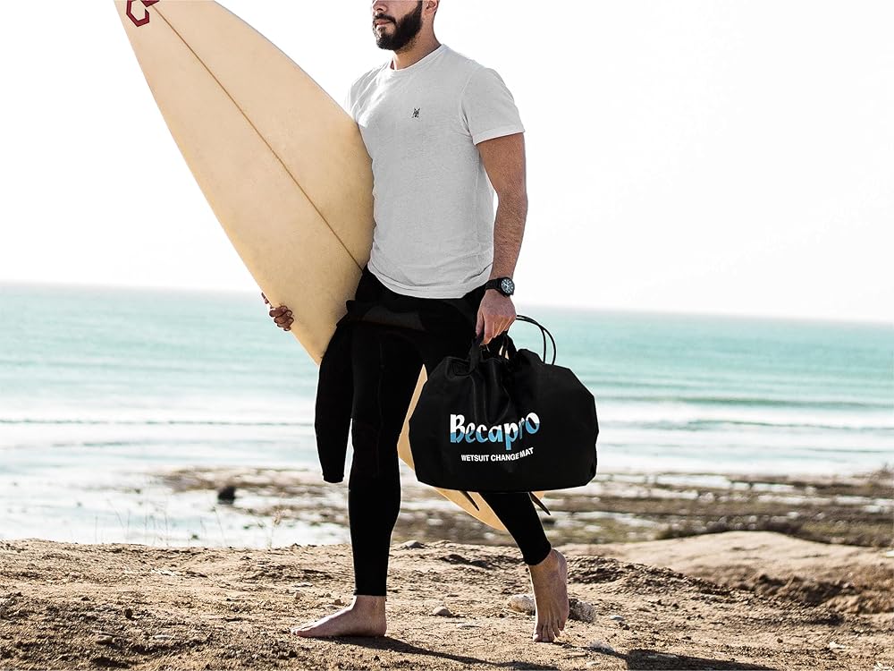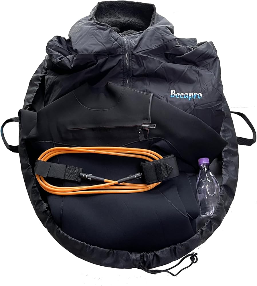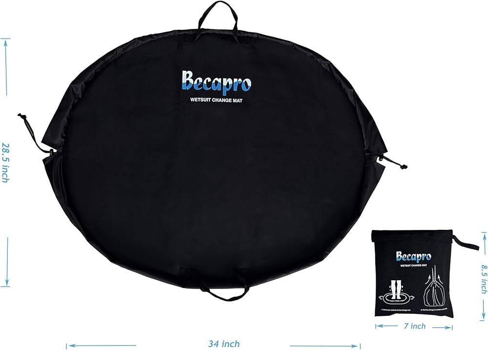 PROTECT WETSUIT - BECAPRO Surf Wetsuit Change Mat is a large portable bag With a 35” diameter , Changing on this mat prevents your suit from getting dirty, thus extending its life.