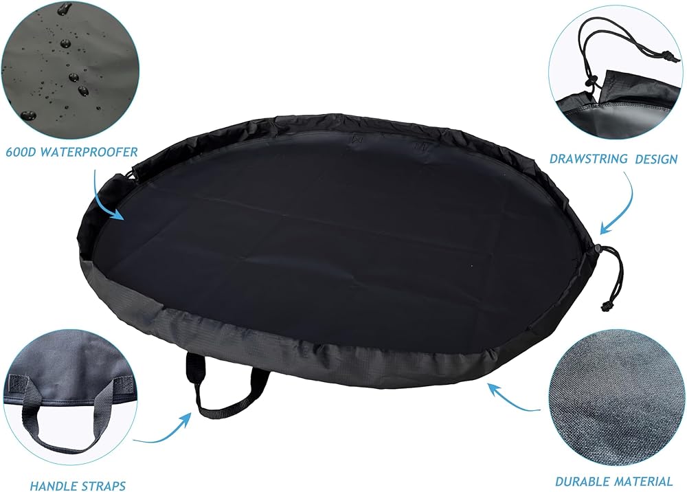 PORTABLE DESIGN-BECAPRO Surf Wetsuit Change Mat is a large portable bag when Drawstring pull turns .You can easily carry your wetsuit, changing poncho/towel and more surfing equipment.