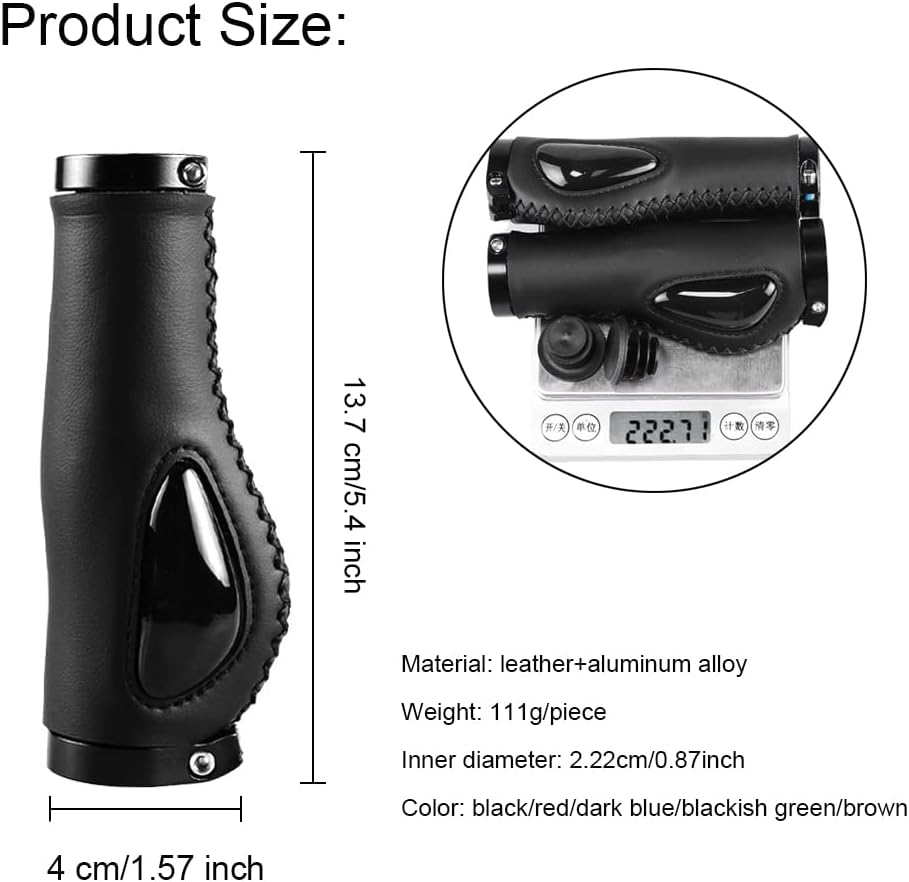 Product Size: Inner diameter=0.87", Length=5.4", Weight=3.8 oz/grip, Suitable for most of bike handlebars