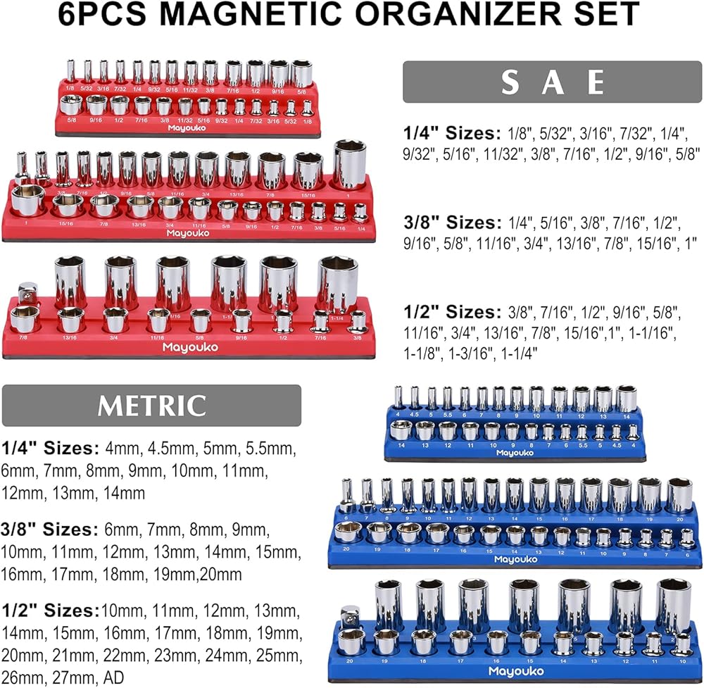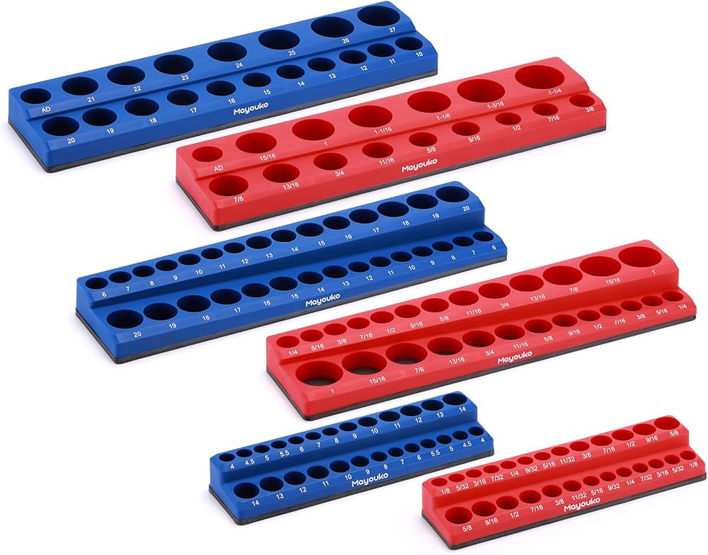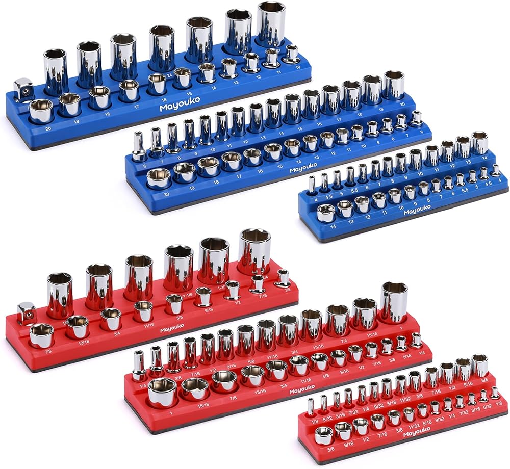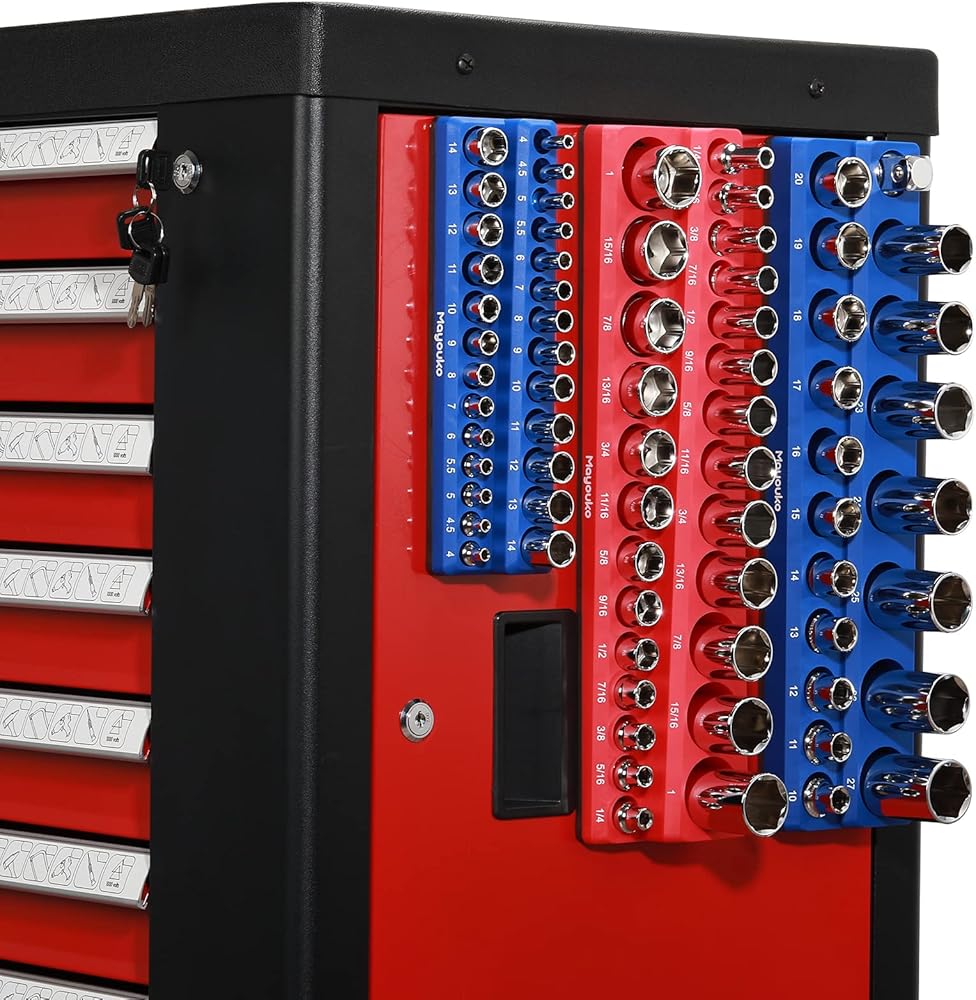 This Mayouko Magnetic socket organizer is made of high quality ABS material with strong magnets.It can attach to most ferrous metallic surfaces,you can place it on your chest,truck,drawer.Neat and systematic tools management by using our tool organizers will save your time and make life and work more convenient.All Mayouko products with 1 year warranty,if you have any problem,please contact us.