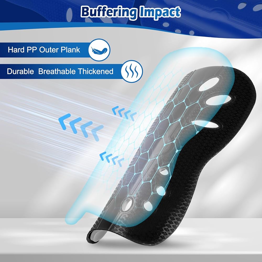 High-quality material: This football shin guards are made of high-quality PP material, which is strong and durable, not easy to break, fade or deform. They use EVA sponge inside, which is breathable and reliable, providing you with a good wearing experience
