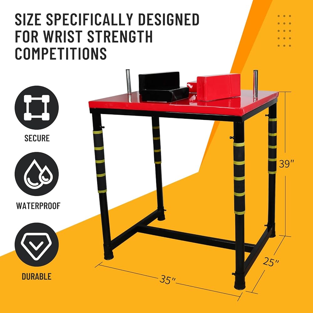 Table Size: This arm wrestling table dimensions: 90 x 65 cm (35*25in); table height: 100cm (39in); Weight: 24 kg (53lbs)
