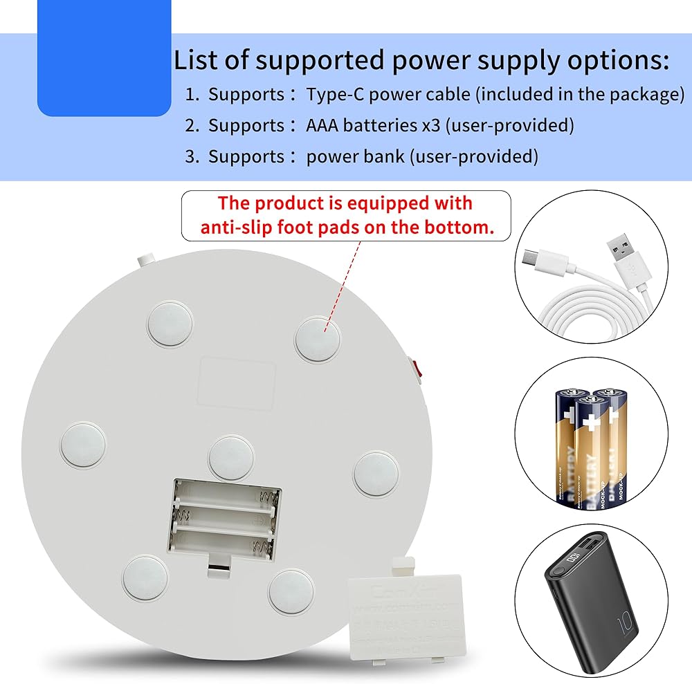 【خيارات متعددة لإمدادات الطاقة】: يدعم القرص الدوار للشاشة المزودة بمحرك إمداد الطاقة عبر واجهة من النوع C وبطاريات AAA، أو أي منهما. بطارية احترافية ودائرة تحويل تلقائية من النوع C، تدعم الاستخدام المتزامن لكليهما أو أحدهما. يوصى بإزالة البطارية في حالة عدم استخدامها لفترة طويلة.