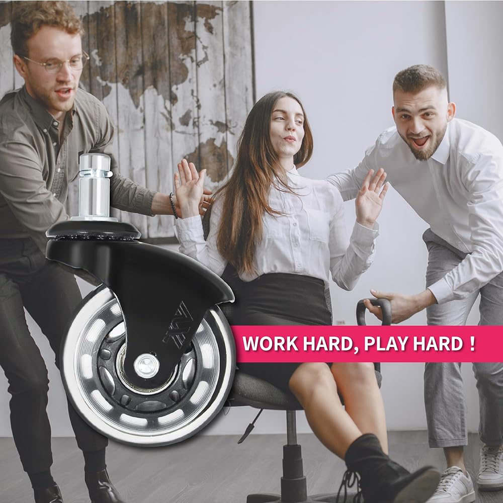 Protect your floors and enjoy a more comfortable, relaxed sitting experience by clicking ‘Add to Cart 🛒🛒🛒' above and adding our caster wheels set to your computer desk chair!