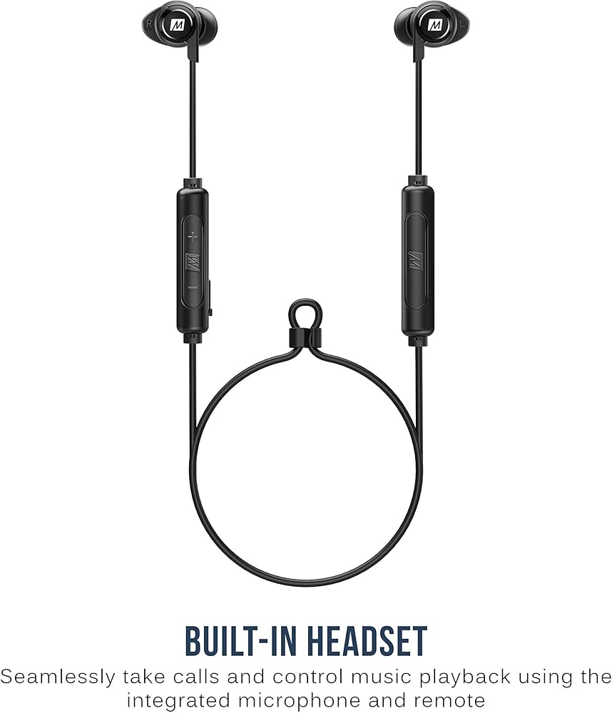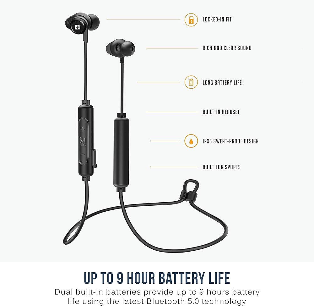 سماعات أذن MEE audio M9B Bluetooth 5.0 لاسلكية داخل الأذن مع ميكروفون مدمج - عمر بطارية طويل 9 ساعات، سماعات أذن مقاومة للماء IPX5 - للتمرين في صالة الألعاب الرياضية باللون الأسود