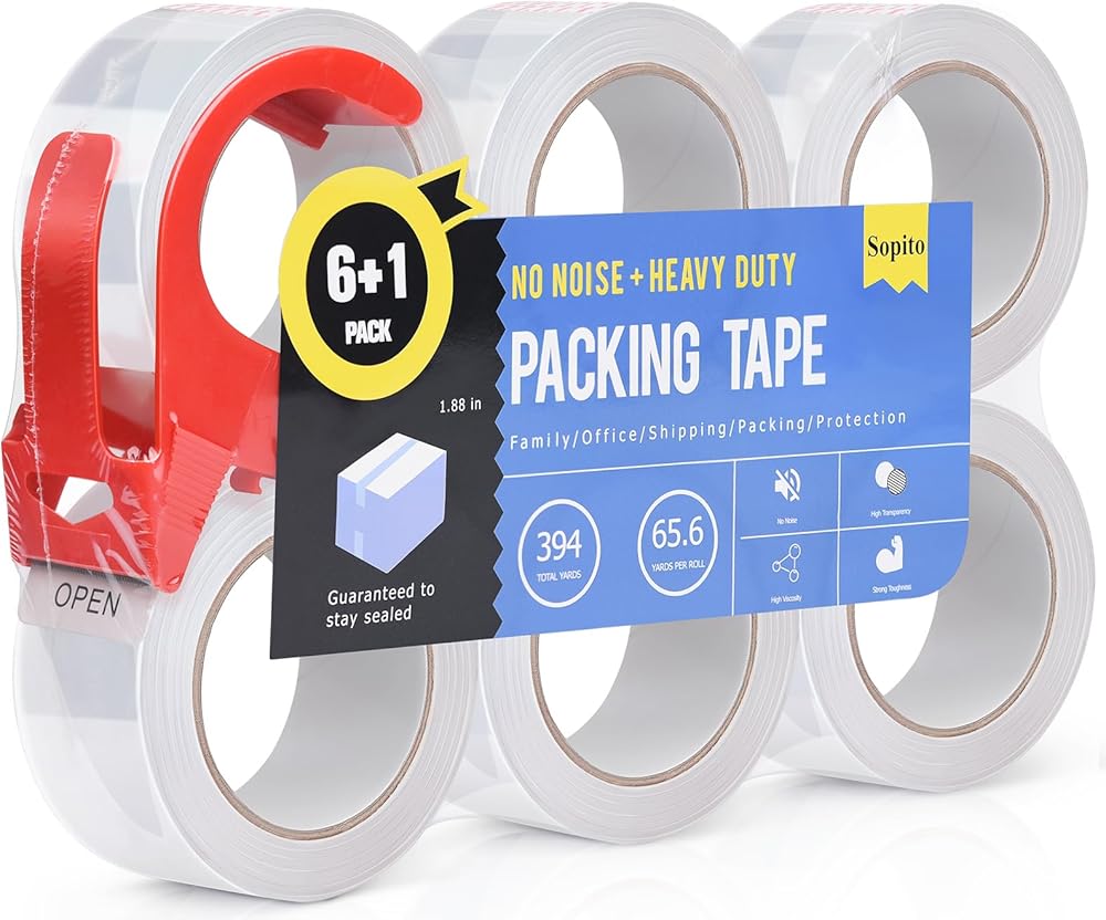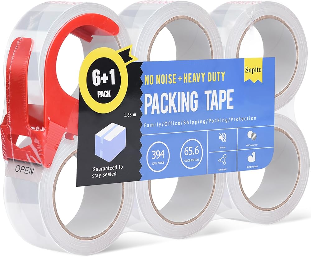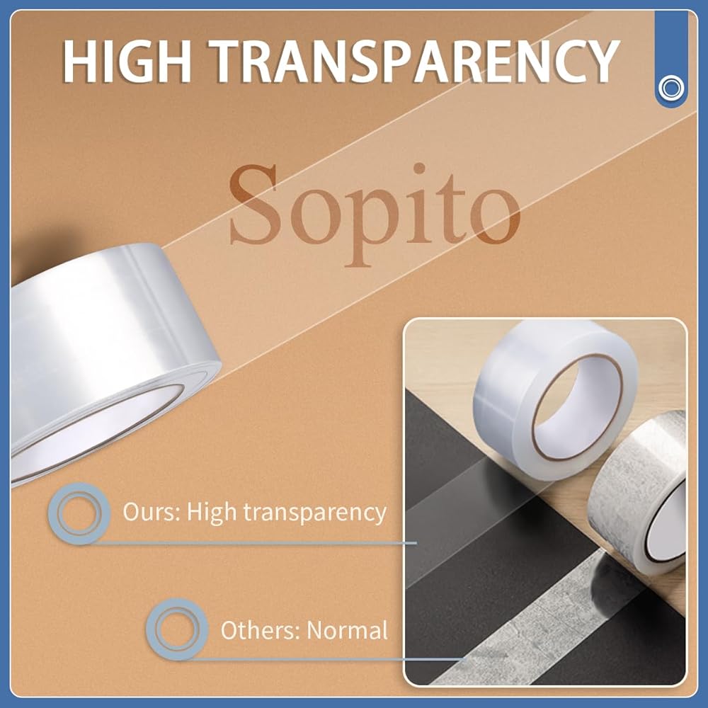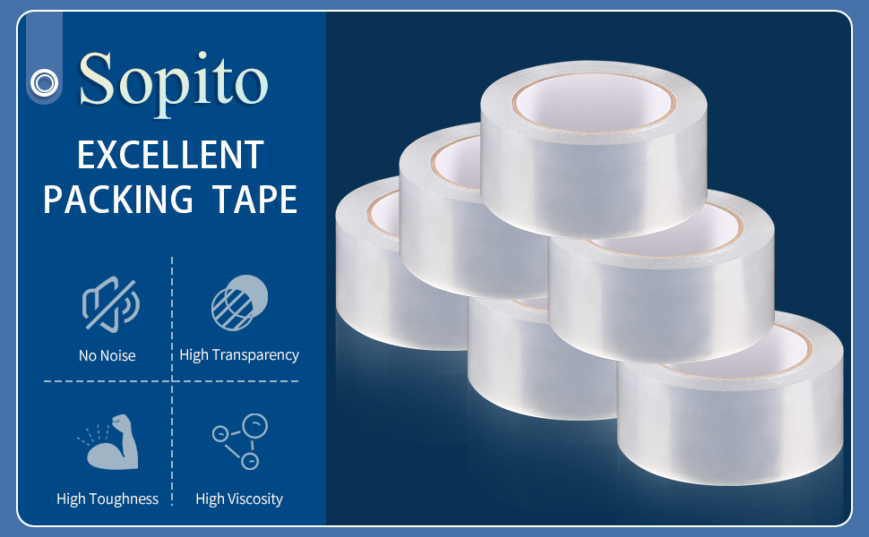شريط تغليف عالي الجودة: شريط Sopito عالي التحمل هو لاصق PSA أكريليك ممتاز (BOPP)، يمكن لصقه على الصناديق بإحكام ويخلق التصاق طويل الأمد بالصندوق. يبلغ سمك الشريط 1.97 مل مع قوة شد عالية، وليس من السهل كسره، كما أنه مقاوم للماء، كل ذلك لضمان بقاء عبوتك محكمة الغلق أثناء النقل.