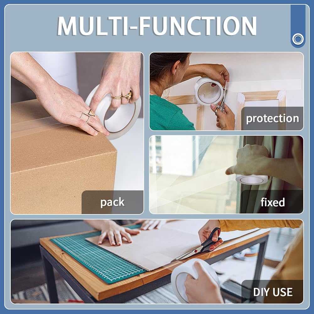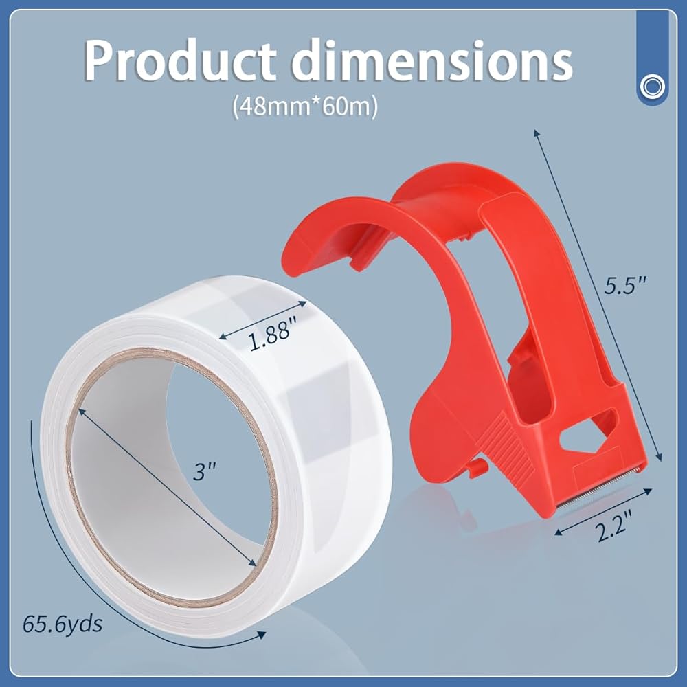 شريط الشحن مع موزع: تحتوي العبوة الواحدة على 6 لفات شريط يبلغ مقاس كل منها 1.88 بوصة × 2362 بوصة (65.6 ياردة)، مع موزع شريط بلاستيكي، وذرة التوزيع 3 بوصة. شريط مثالي لصناديق التعبئة، أو تثبيت الأشياء أو حمايتها، وإزالة غبار الملابس وشعر الحيوانات الأليفة.