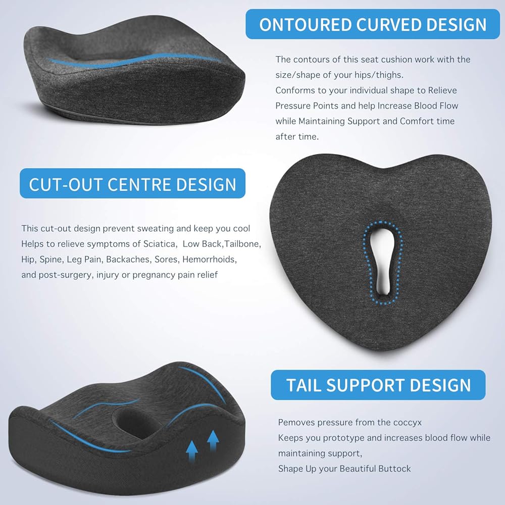 【وسادة مقعد لكرسي المكتب】وسادة مقعد العصعص مناسبة للأشخاص الذين غالبًا ما يقومون بأعمال مكتبية يومية والقيادة لمسافات طويلة. وسادة مقعد لتخفيف الضغط. رائعة للاستخدام في المكتب أو المنزل أو السفر أو مقعد السيارة أو الكرسي المتحرك. غطاء قطني مسامي يجعل جلوسك أكثر راحة، ولا يشعر باللزوجة. الغطاء قابل للإزالة ويمكن غسله في الغسالة.