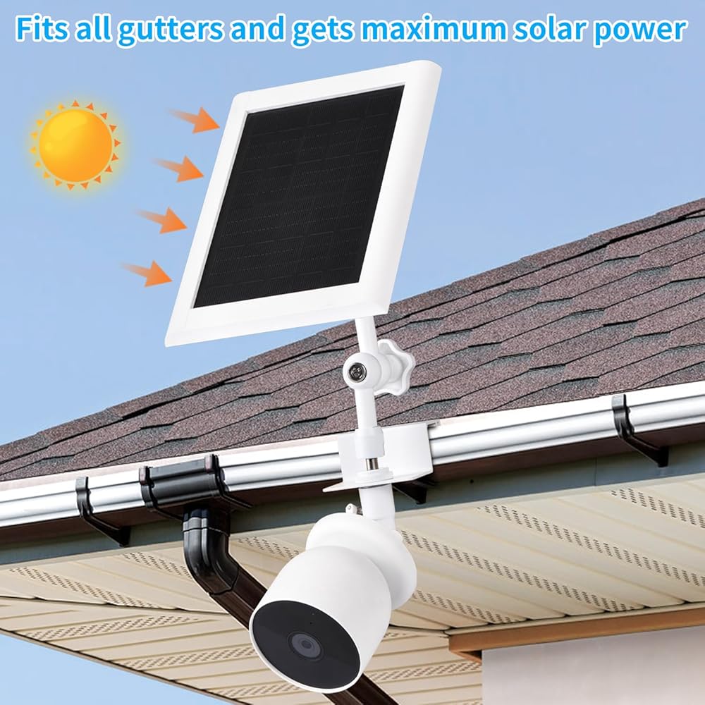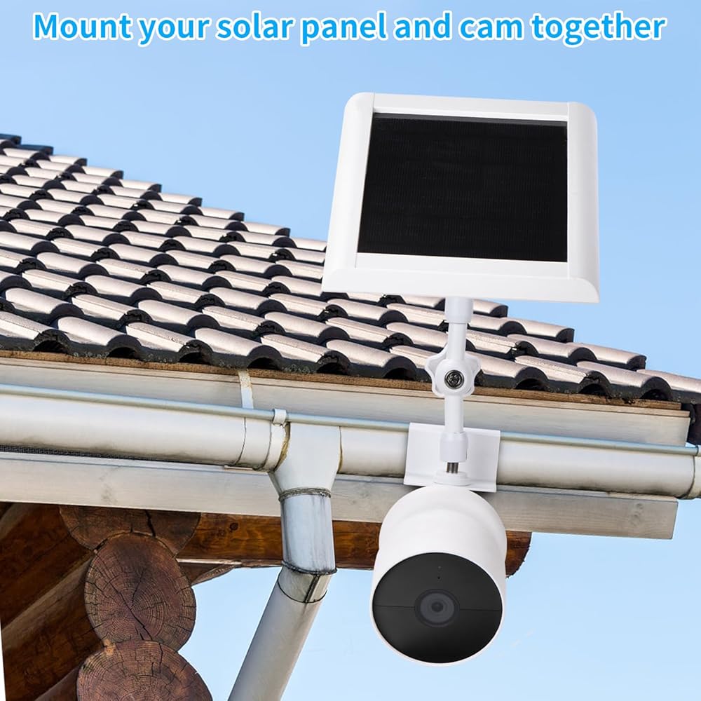 حامل مزراب 2 في 1 لكاميرا Google Nest Cam الخارجية (البطارية) واللوحة الشمسية، دعامة تثبيت قابلة للتعديل 360 درجة لللوحة الشمسية، زاوية رؤية مثالية وسهلة التركيب