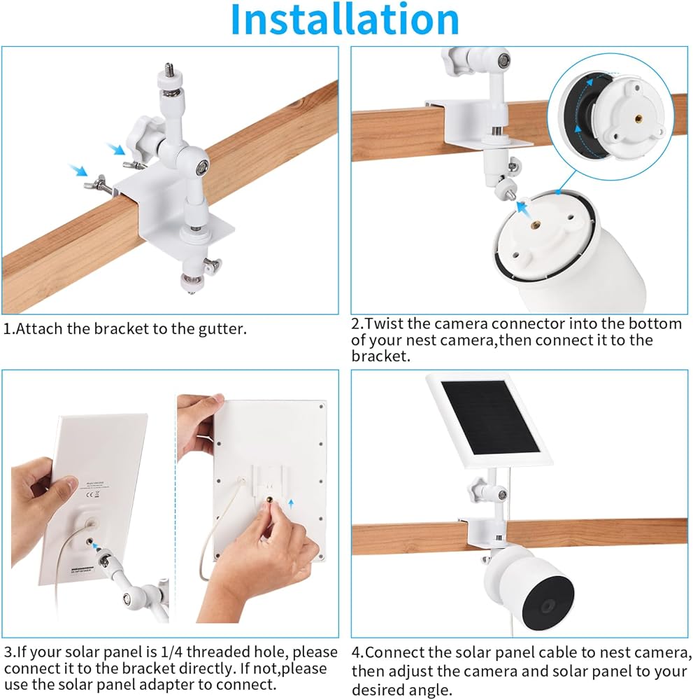 التوافق: تم تصميم حامل المزراب هذا لكاميرا Google Nest Cam الخارجية (البطارية) - الجيل الثاني واللوحة الشمسية. (ملاحظة: لا يتم تضمين كاميرا Nest واللوحة الشمسية)