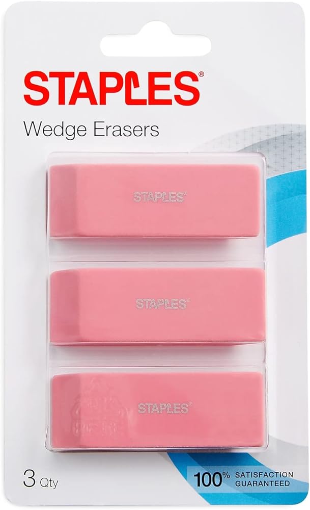 ممحاة إسفينية وردية من ستابلز، 3/عبوة