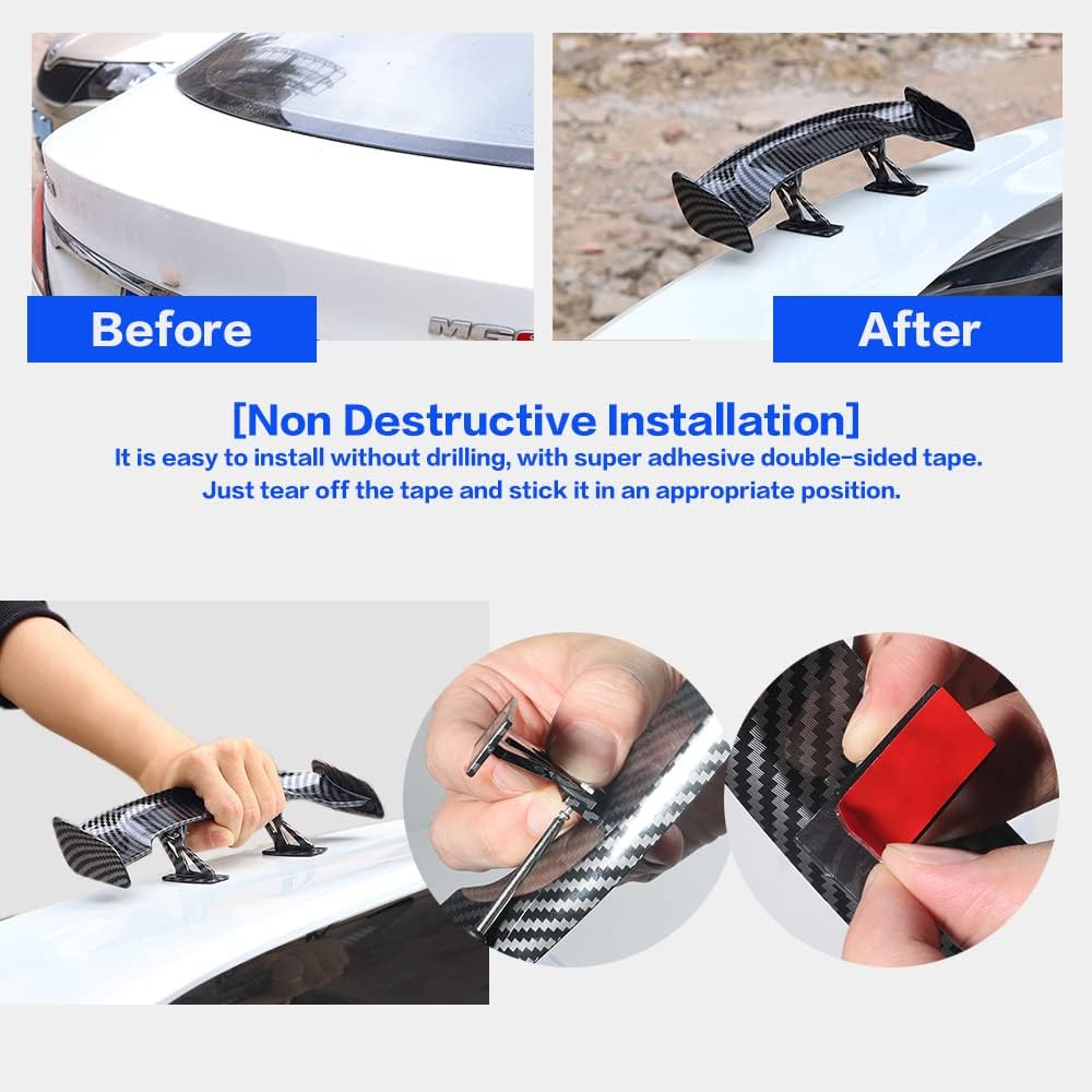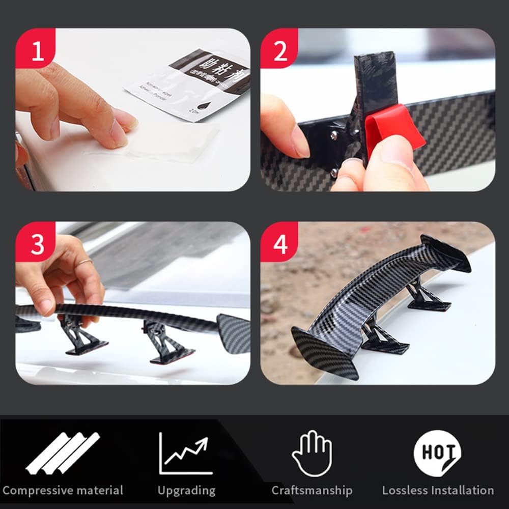 [High Quality Material] The car mini spoiler wing is made of high quality ABS plastic material with carbon fiber texture on the surface, making your car more outstanding.