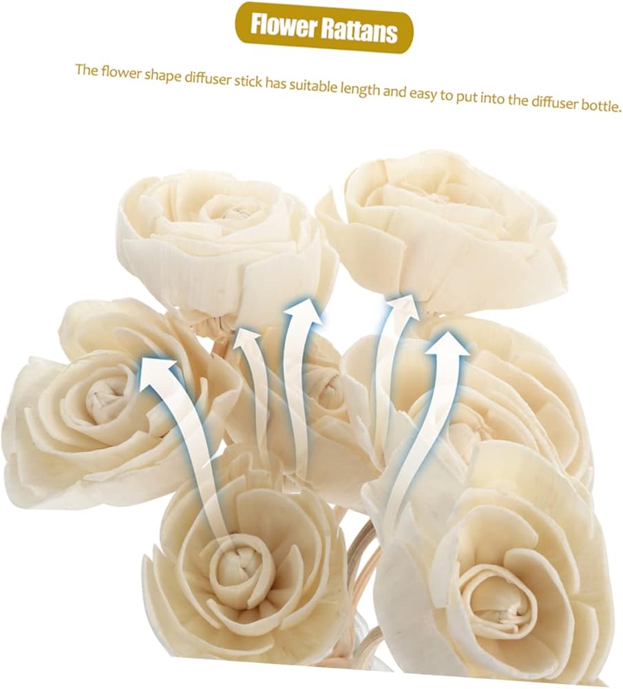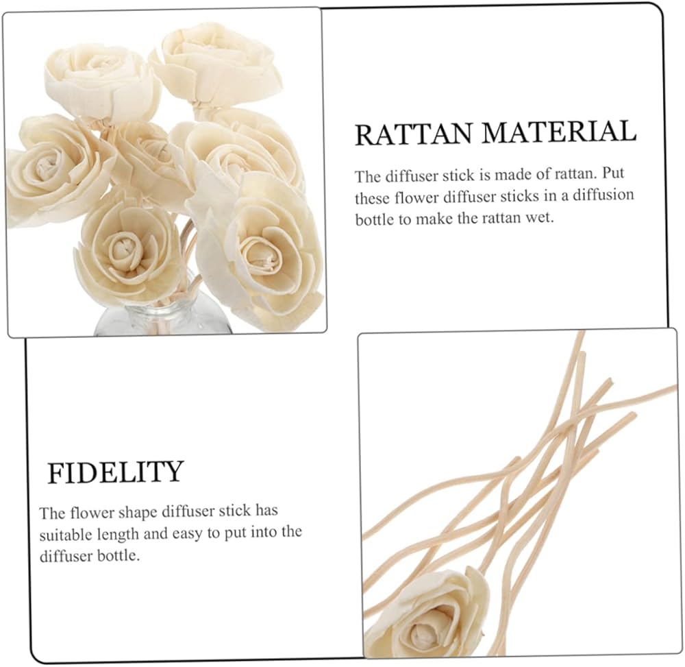 أعواد ناشر روائح الروطان على شكل زهرة الورد -- 【عصا ناشر الزيوت العطرية】: عصا خشب الروطان الطبيعي بنمط الورد، رائعة وجميلة، محاكاة عالية، مع متانة جيدة جدًا وتأثير يدوم طويلاً، حتى تتمكن غرفتك، وغرفة المعيشة، والخزانة، سيارة مليئة برائحة الزهور الحلوة.