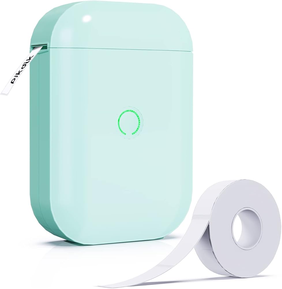 صانع ملصقات صغير محمول - آلة صنع الملصقات مع طابعة ملصقات الشريط لوضع العلامات على الجرار وصناديق تنظيم المنزل والمكتب المتوافقة مع iPhone Android USB القابلة لإعادة الشحن وسهلة الاستخدام، أخضر