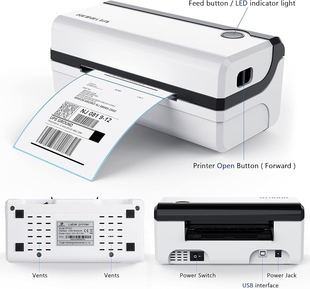 طابعة Rongta عالية السرعة 4 × 6 ملصقات شحن تجارية طابعات باركود حرارية تجارية متوافقة مع Windows وMAC لـ Office Home Ebay، Amazon، FedEx، Shopify، RP420 أبيض (أبيض)