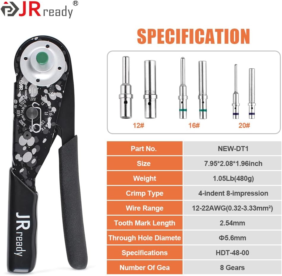 【أداة تجعيد الموصل الألماني】: أداة العقص الألمانية الجديدة DT1 مناسبة لسلسلة DTP (مقاس 12 اتصال صلب)، سلسلة DT (مقاس 16)، سلسلة DTM (مقاس 20)، سلسلة HD30، سلسلة HDP20، سلسلة DRC، سلسلة HD10 ، سلسلة DT، سلسلة DRB، سلسلة DTV، سلسلة AEC، سلسلة STRIKE، Jiffy Splice