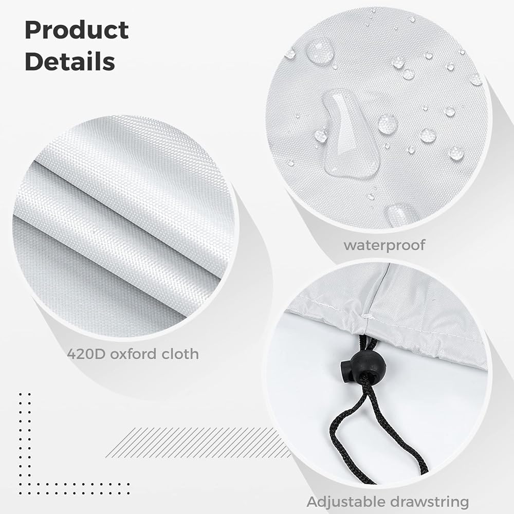【سهل الاستخدام للغاية】سلك مرن عالي التحمل يسمح بالتعديل من أجل تركيب محكم وسهل. أبازيم سريعة التحرير ومثبتات قابلة للتعديل تحافظ على الغطاء مثبتًا بشكل آمن دائمًا خاصة في الطقس القاسي. عند عدم الاستخدام، يمكنك وضعها في الحقيبة وتخزينها في أي مكان في منزلك.