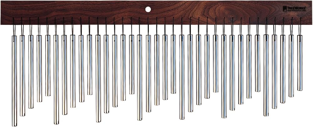 AN EXOTIC AND HAUNTING CHIME SOUND | As a variation on our popular TRE35, this large single row chime emits a slight pulse due to its closely pitched tones. This chime consists of seven groups of five bars that lower slightly in pitch as you sweep your hand from top to bottom, giving off a swirling and delayed chime effect.