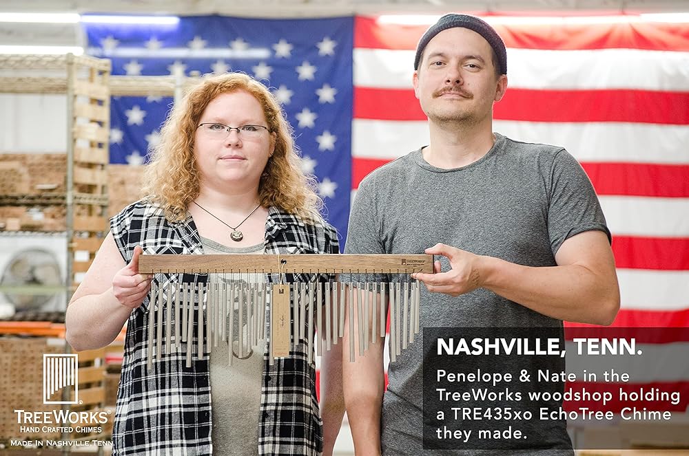 PROUDLY MADE IN THE USA | Each TreeWorks Chimes bar chime is made from Tennessee hardwood and locally sourced aluminum/titanium and is assembled in our workshop just north of Nashville, TN.
