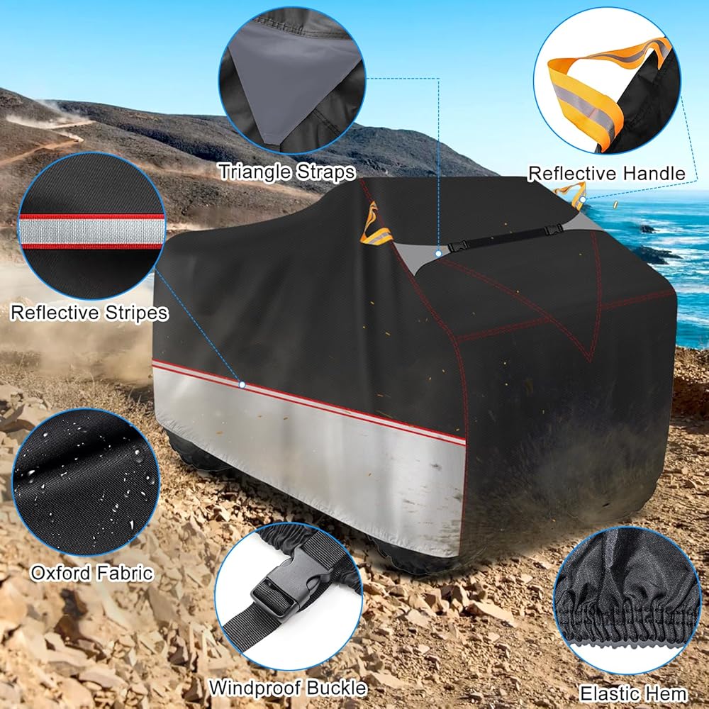 • [أعلى جودة] غطاء ATV مصنوع من قماش أكسفورد السميك المتين لحماية ATV الخاص بك من الغبار والأشعة فوق البنفسجية والمطر أو العوامل الأخرى، وبالتالي يوفر أقصى قدر من الحماية ويمنحك تجربة أكثر راحة.